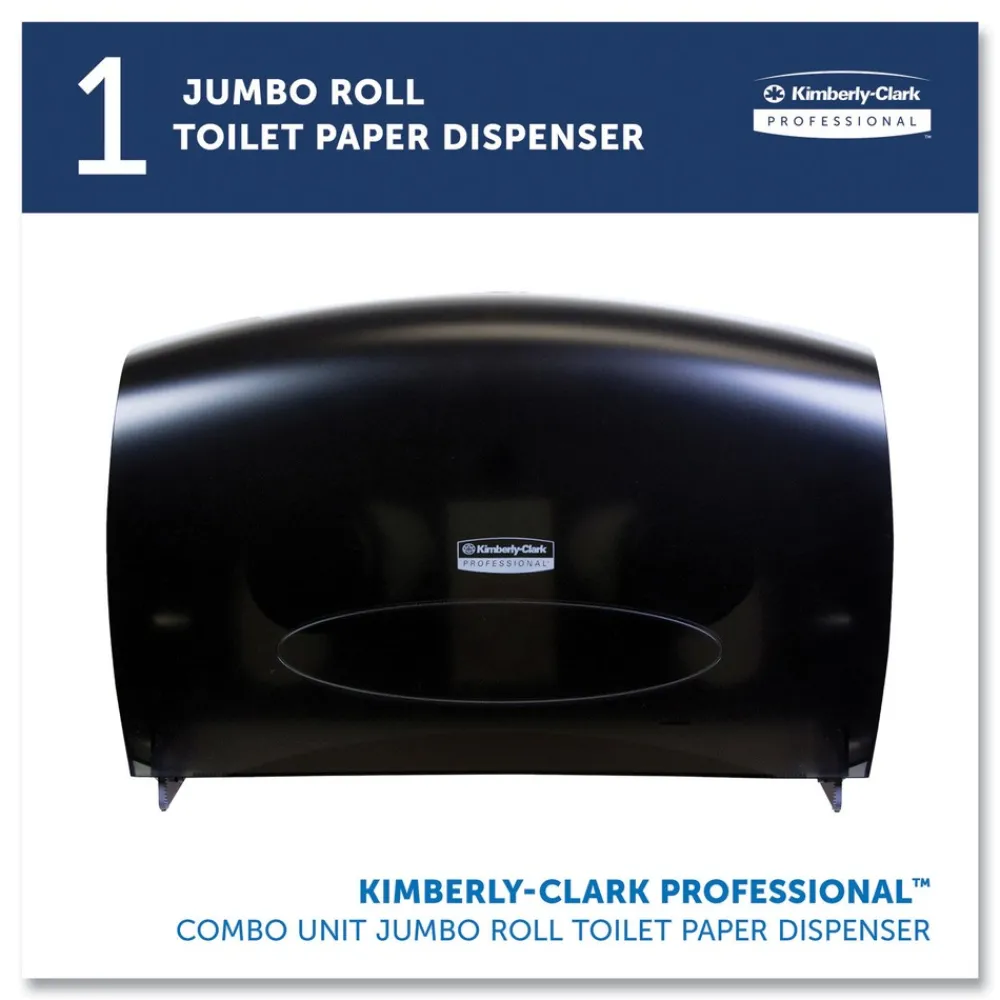 Kimberly-Clark Professional 09551 20.4 in. x 5.8 in. x 13.1 in. Cored JRT Jumbo Combo Tissue Dispenser – Smoke/Gray