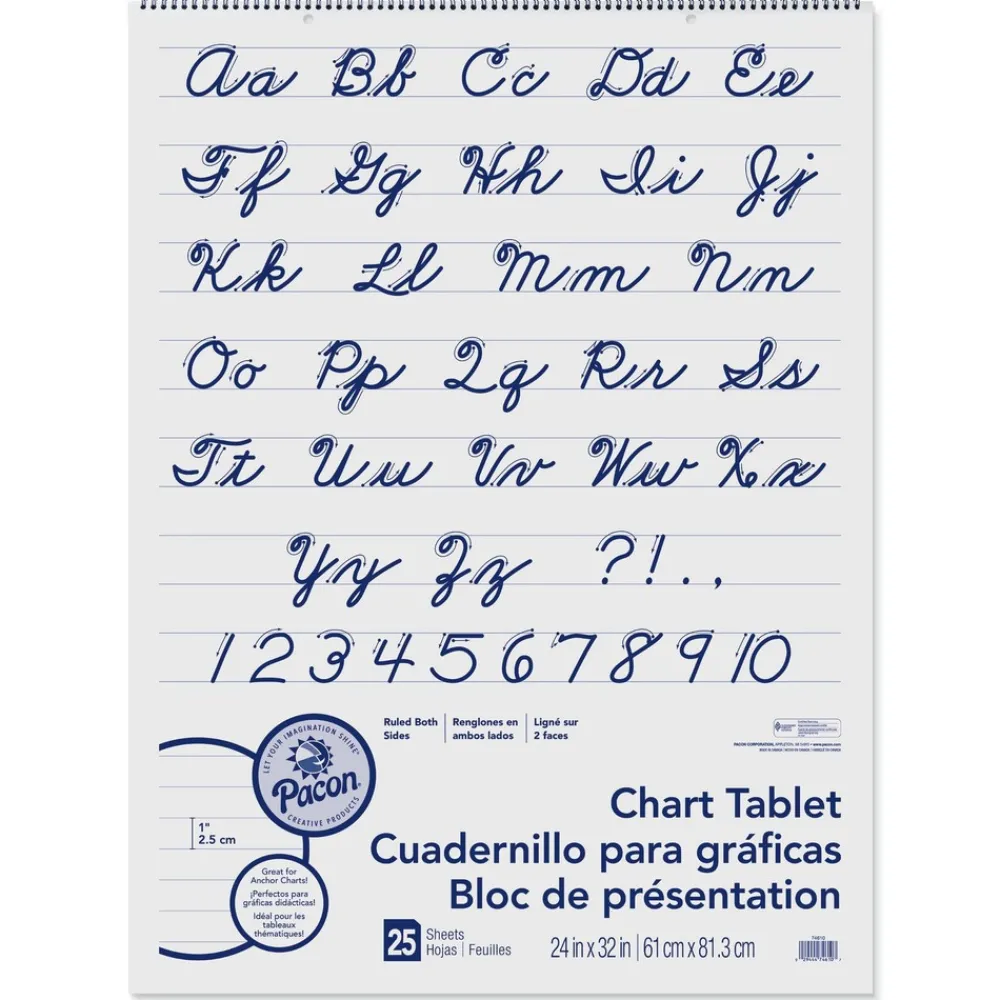 Perfect for classroom demonstrations of handwriting, this chart tablet has white sulfite bond paper. Pages are two-hole punched.