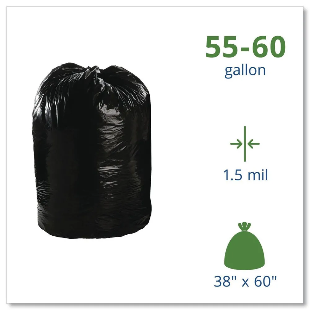 (100/Carton) 38 in. x 60 in. 1.5 mil. 60 Gallon Total Recycled Content Plastic Trash Bags – Brown/ Black – T3860B15