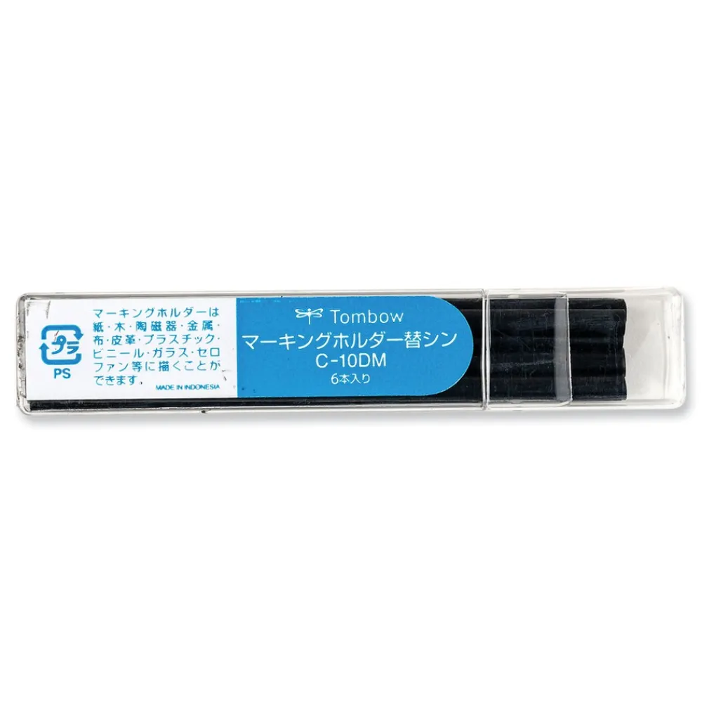 Versatile wax-based marking pencil refills ensure smooth, legible writing on a variety of surfaces. Use on both porous and non-porous surfaces, such as ceramics, stone, wood, glass, rubber, plastic, textiles, metal, coated paper, cardboard and more. Wax-based medium is water-resistant and works great on both dark and transparent surfaces. Easily erase from non-porous surfaces by wiping with a damp cloth. No sharpening required-perfect for craftsmen and professional use in industrial environments. Compatible with Tombow Mechanical Wax-Based Marking Pencils.