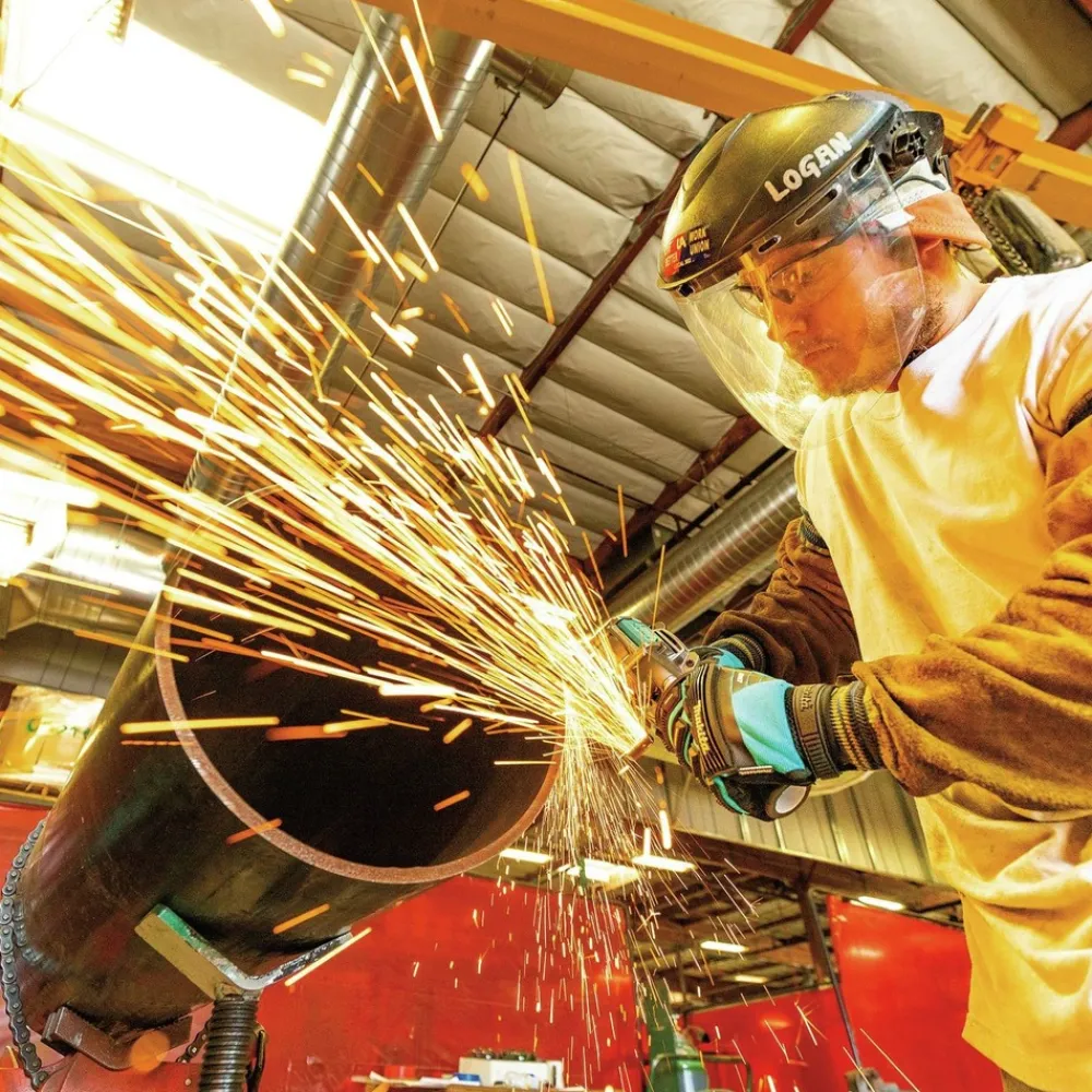 Electric brake stops the grinding or cut-off wheel in 2 seconds or less for maximum productivity