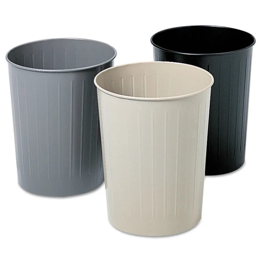 Safco 9604BL 6 Gallon Round Steel Wastebaskets – Black