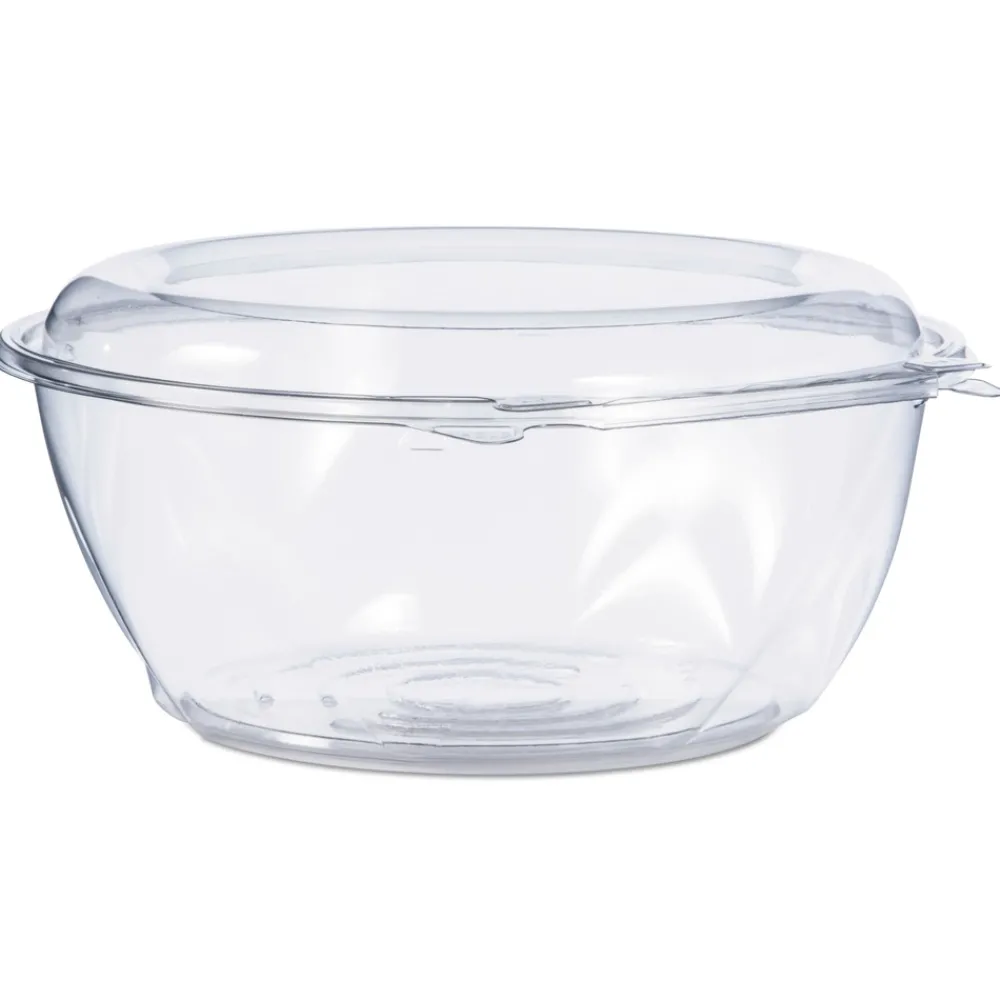 Dart CTR64BD 64 oz. 8.9 in. Diameter x 4 in. Plastic Tamper-Resistant Tamper-Evident Bowls with Dome Lid – Clear (100/Carton)