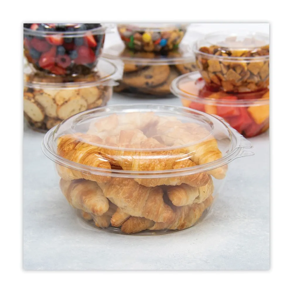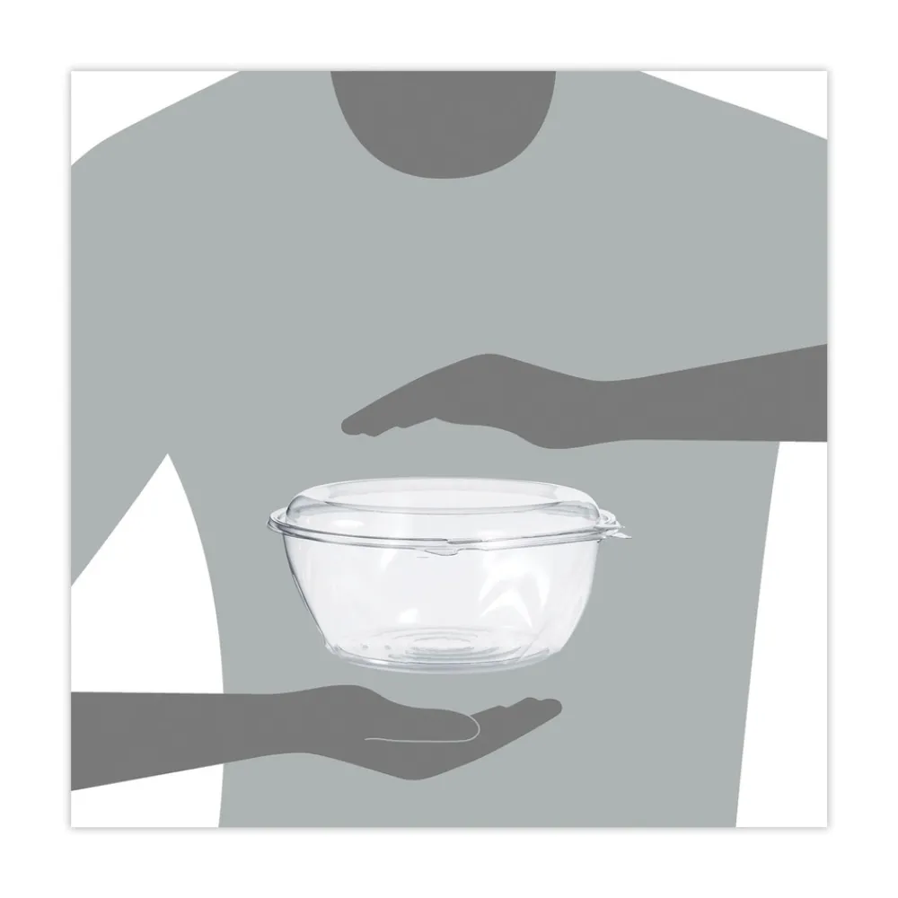 No matter what’s inside, these bowls keep your food safe, secure and looking good. Designed to prevent tampering without shrink bands or extra wrapping, SafeSeal bowls make sharing food easy. The complete perimeter seal preserves freshness and prevents leaks and spills. The tamper alert hinge has a visible seal that, if broken, makes it obvious the container has been opened. The specialty lid inhibits the ability to lift it from the base without tearing the hinge. Once the seal is broken, the now two-piece container is easy to re-close and continues to be leak-resistant. Make sure your food is the star of the show with this crystal-clear material. Merchandise and transport with confidence thanks to the stable stacking design.
