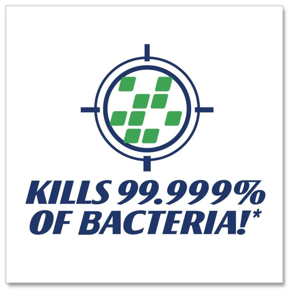Provides convenient and effective bacteria-kill. Kills 99.999% of pathogenic bacteria in as little as 15 seconds. Dermatologist-tested and hypoallergenic. Fragrance and dye-free. Contains skin conditioners.