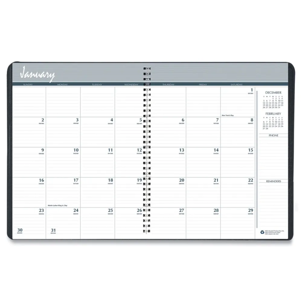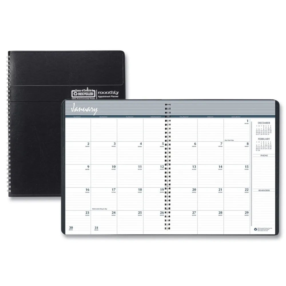 House of Doolittle 268-02 8.75 in. x 6.78 in. 14-Month (Dec 2025-Jan 2027) Recycled Ruled Monthly Planner – Black Cover