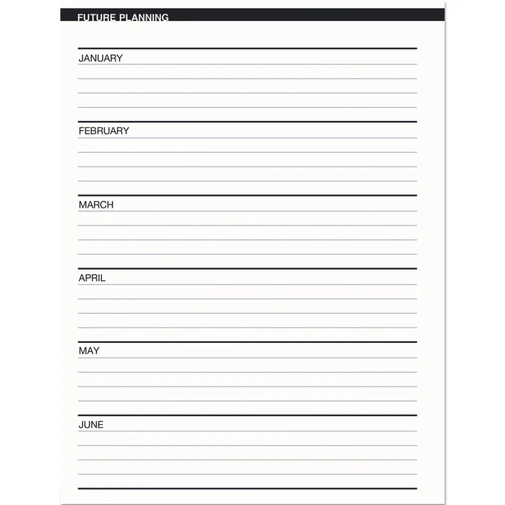 Monthly page spread enables you to see your entire month’s schedule. Each page features a note section and a two-month reference calendar view for long-term planning. Includes a double-sided storage pocket. Strong wirebound core with an embossed black simulated-leather cover withstands constant use throughout the year. Made entirely of recycled materials.