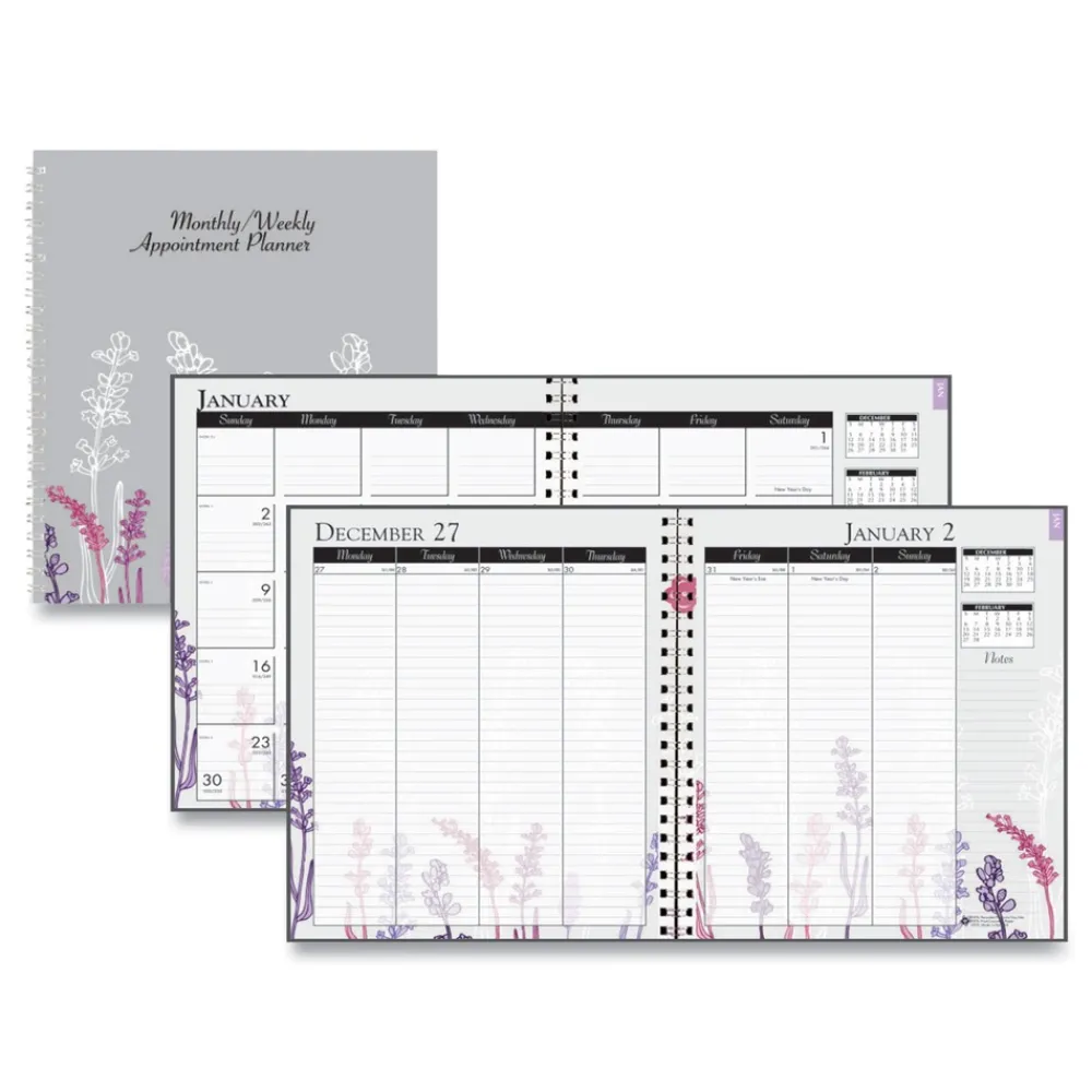 House of Doolittle 2956-74 9 in. x 7 in. 12-Month (Jan-Dec 2026) Recycled Wild Flower Weekly/Monthly Planner – Gray/White/Purple Cover