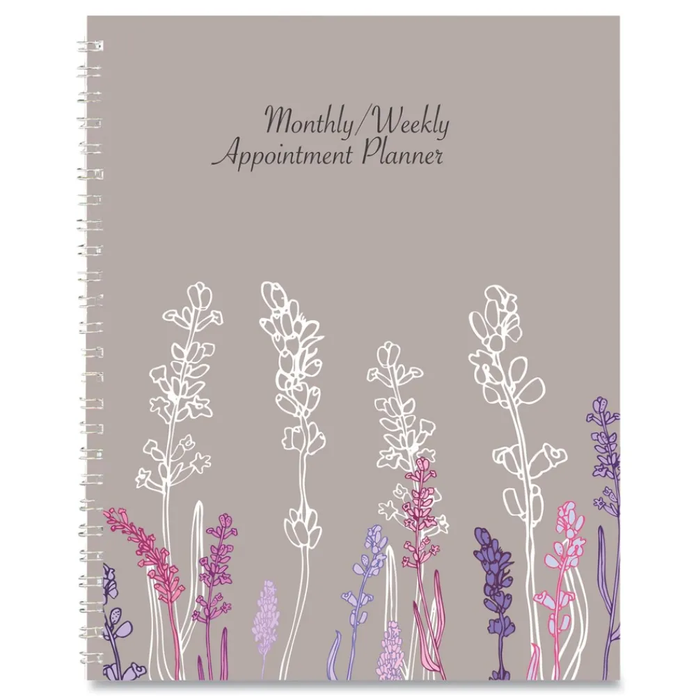 9 in. x 7 in. 12-Month (Jan-Dec 2026) Recycled Wild Flower Weekly/Monthly Planner – Gray/White/Purple Cover – 295674