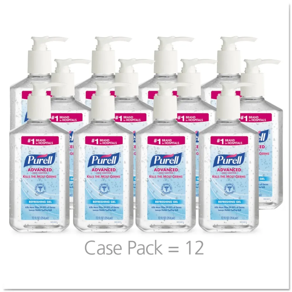 PURELL 3659-12 Advanced 12 oz. Refreshing Gel Hand Sanitizer Pump Bottle – Clean Scent (12/Carton)