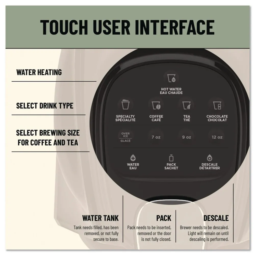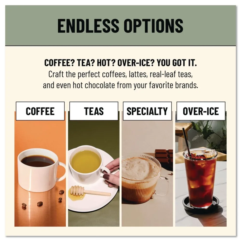 Quick, easy-to-use technology with single-serve drinks ready in 40-60 seconds