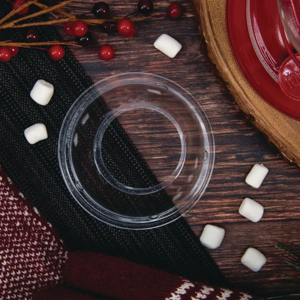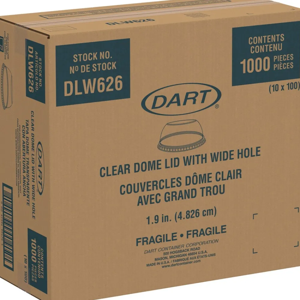 Open-top dome design accommodates both spoons and straws, making these lids ideal for both ice cream treats and cold beverages. Crystal-clear plastic allows easy beverage identification. Snap-tight fit prevents leakage and makes it easy to take your favorite chilled treats on the go. Lid works with a variety of cups, helping conserve storage space and speed assembly.