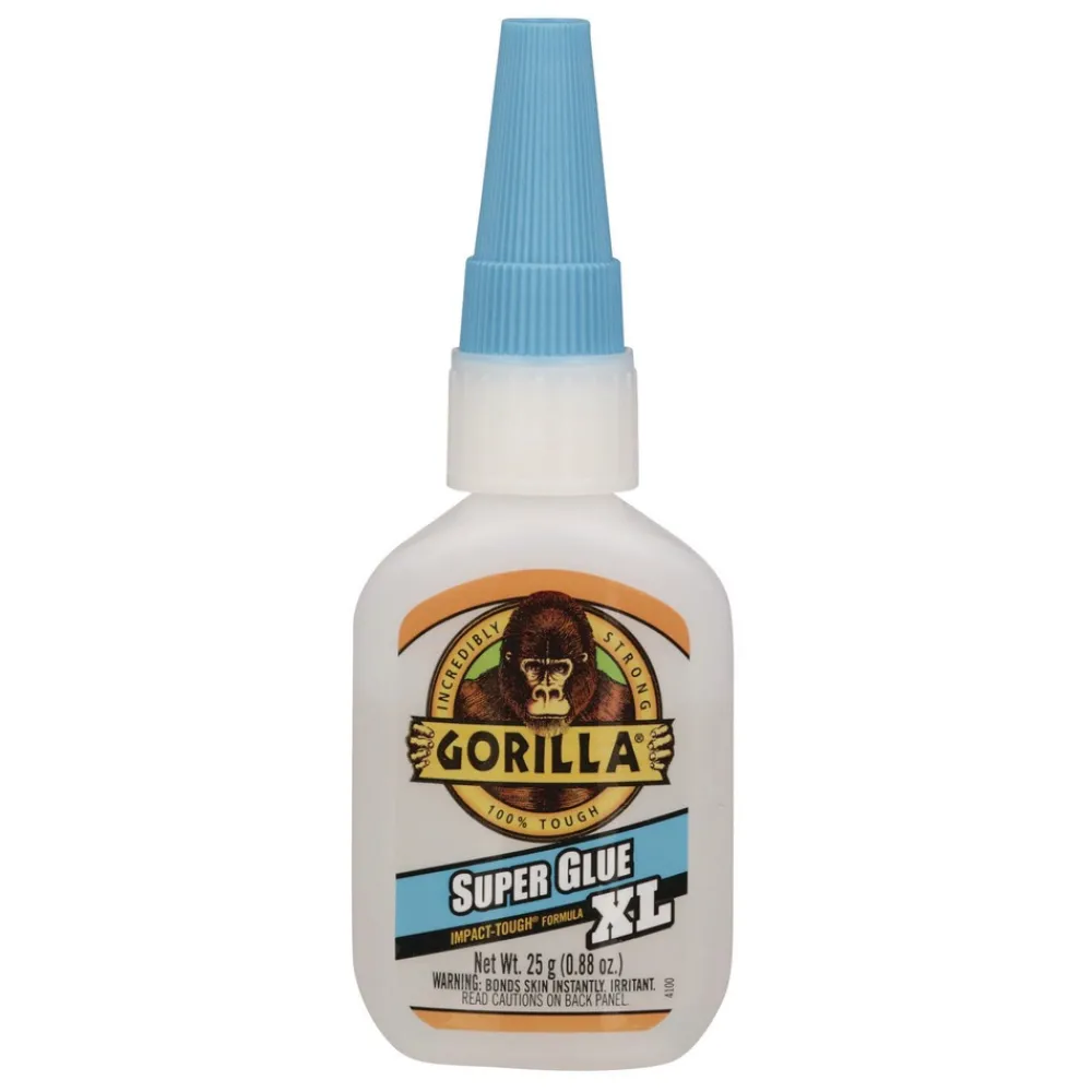 High strength and quick set time make Gorilla Super Glue the go-to for a variety of projects. Developed for long-lasting repairs in an instant, and designed with an impact-tough formula to handle bumps and drops with a strong, reliable bond. Anti-clog cap keeps glue from drying out. Fast-setting and dries in 10-45 seconds with no clamping required. Versatile and bonds plastic, wood, metal, ceramic, rubber, leather, paper, and more. It’s Gorilla Tough use after use.