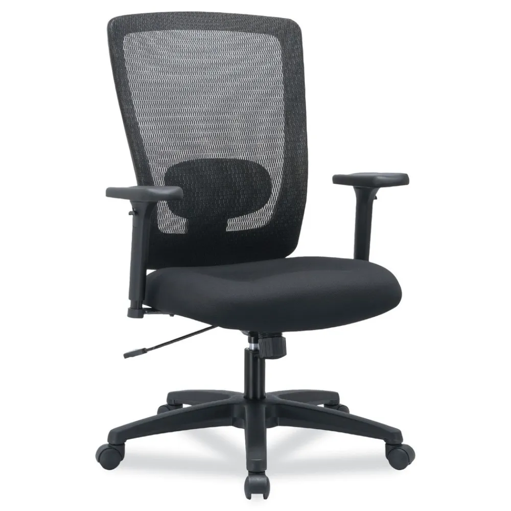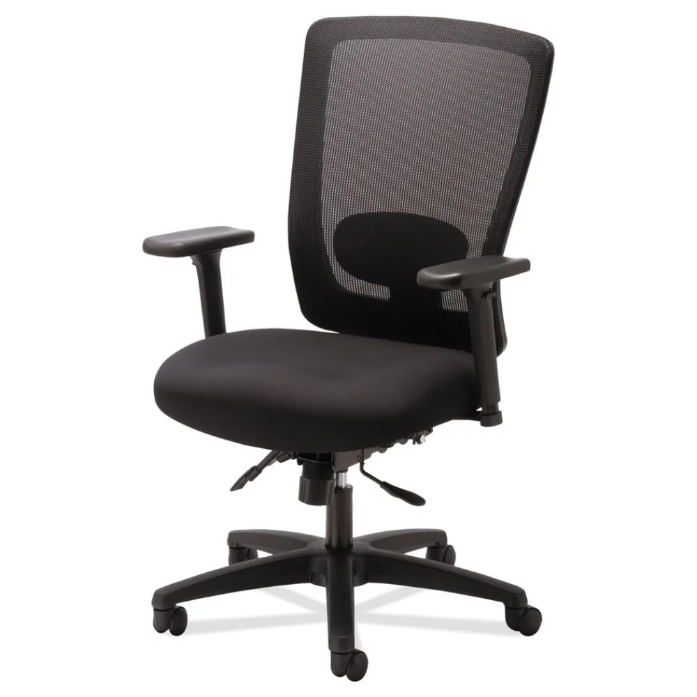 This high-back chair features a crisp visual design and a variety of ergonomic adjustments at an irresistible price. Mesh back offers breathable support and conforms to the natural curvature of the spine. Lumbar adjustment adapts to support the lower back and can be adjusted to satisfy a variety of different users. Adjustable-height and width arms move up and down, as well as, toward and away from the body to adapt to various body sizes. Asynchronous control offers a wide range of movement, assists in spinal alignment and distributes users weight evenly. 360-degree swivel provides easy of movement in any direction. Supports up to 250 lbs.