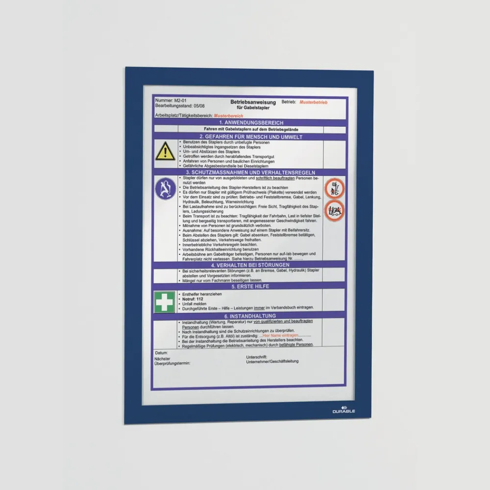 Durable 476807 Infoframe DURAFRAME 9.5 in. x 12 in. Self Adhesive Double Sided Sign Holder – Dark Blue Frame (2/Pack)