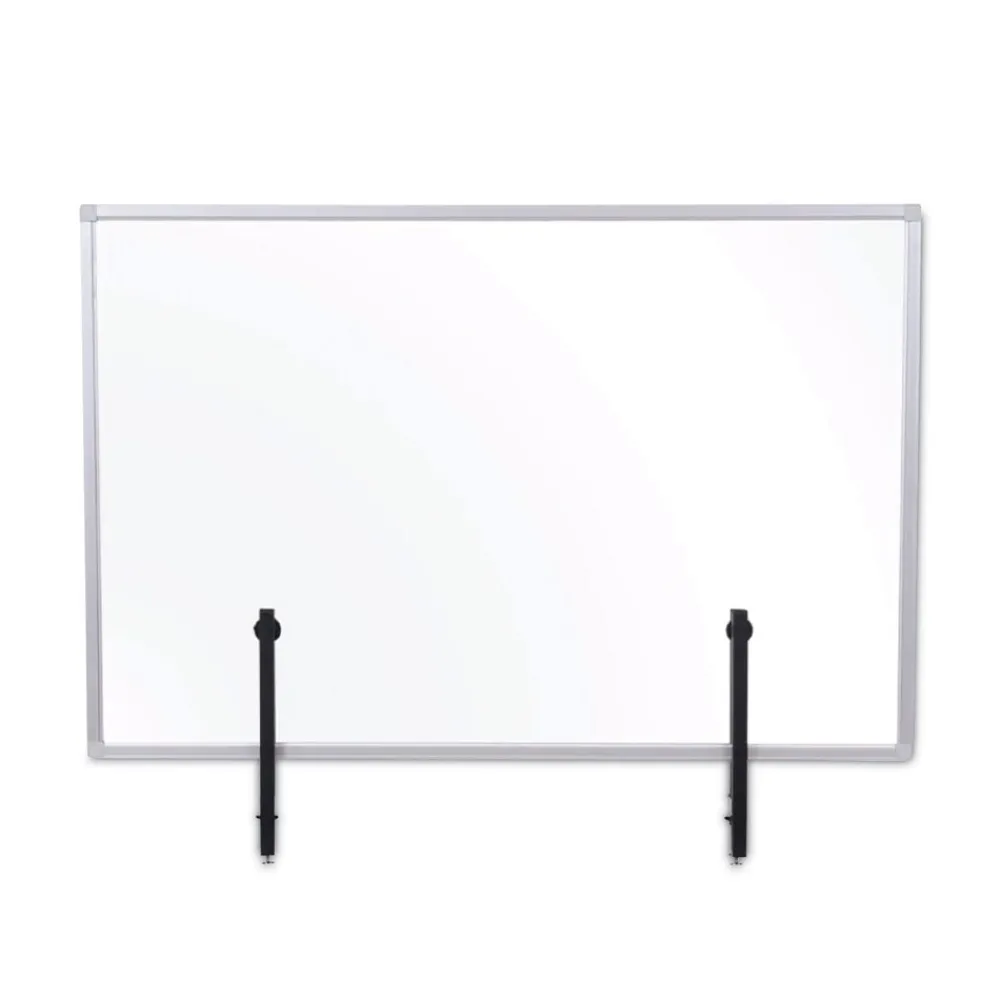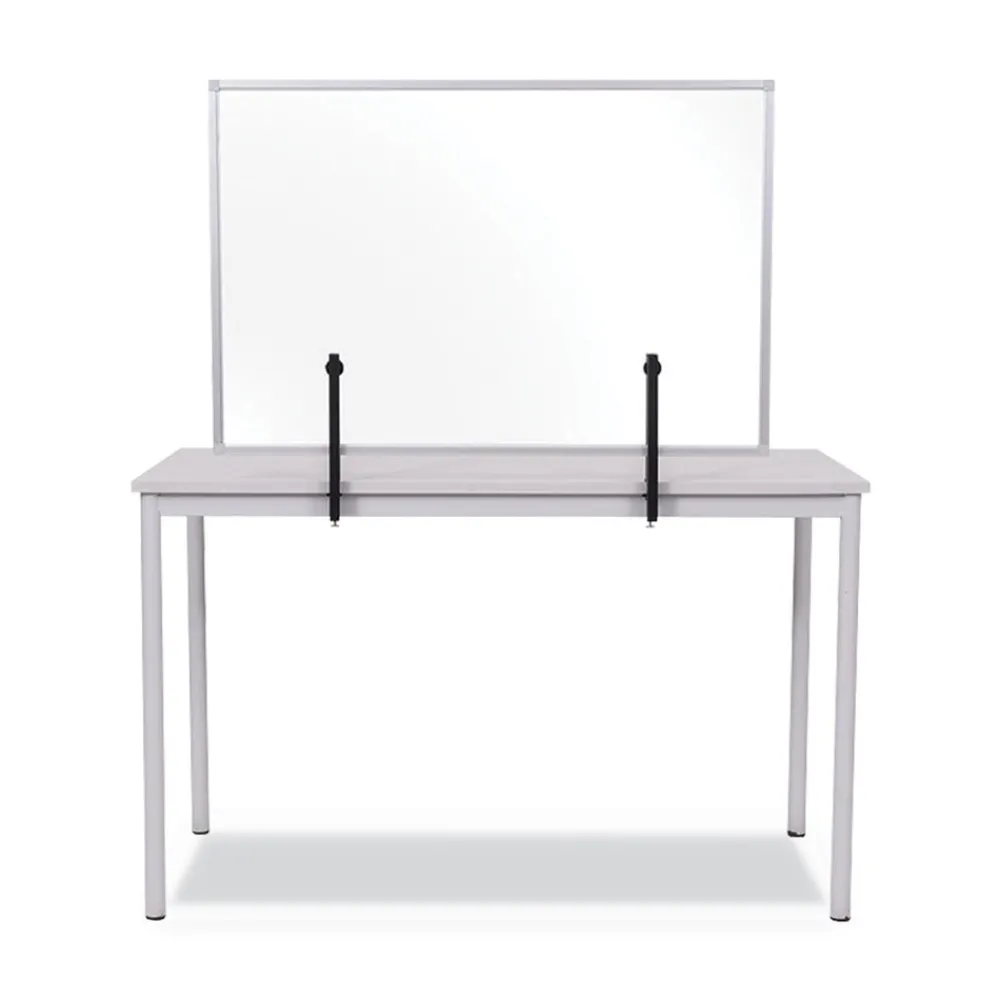 Due to the COVID-19 pandemic, social distancing and personal protection have become the new norm in order to stay safe. MasterVision introduces to you the Protector Series, designed specifically to protect you in public spaces. Transparent Glass Aluminum Desktop Divider allows users to stay protected while maintaining visibility. Ideal product for desks and tables across multiple areas such as offices, restaurants and other public settings. Features an aluminum frame and a pair of robust clamps which attach to the tabletop or desktop.