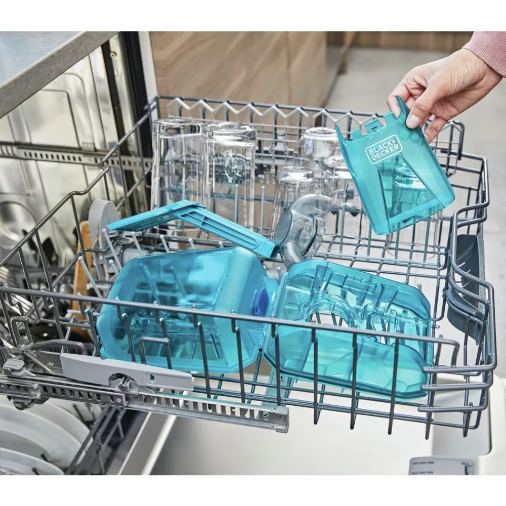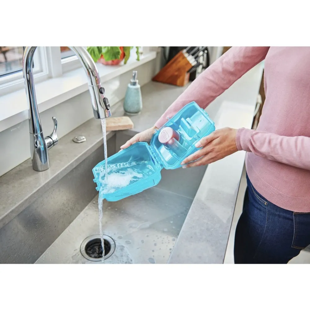 Easy-clean collection bowl: fully opens for convenient washing in the sink and drying between uses