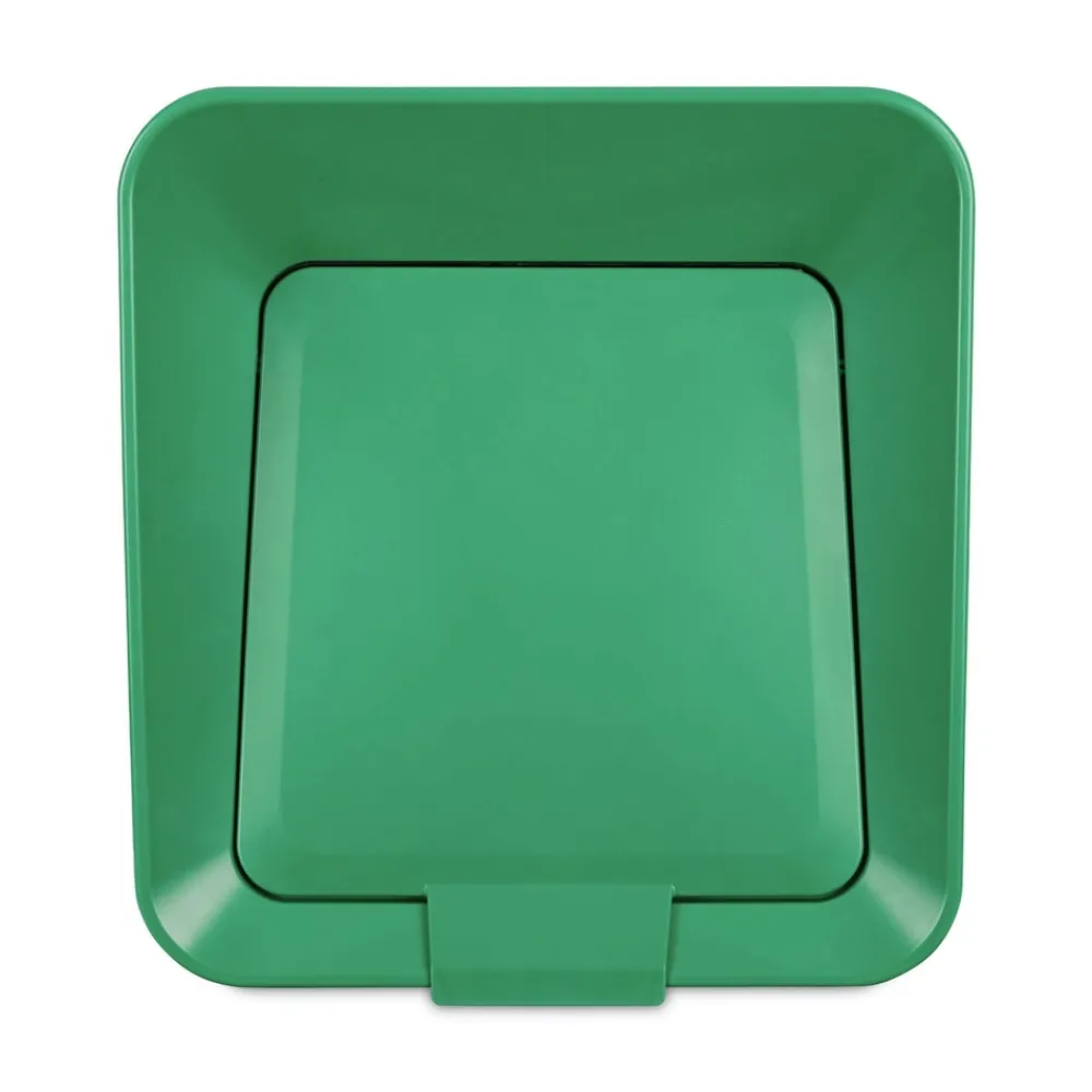 Lids nest neatly with lids of same size for convenient placement during liner changes