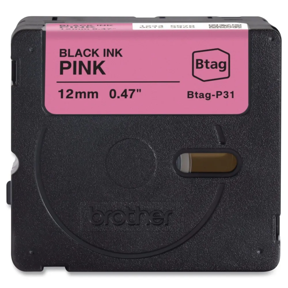 Brother P-Touch BTAGP31 0.47 in. x 13.1 ft. Genuine P-Touch BTAG Label Tapes – Black on Pink
