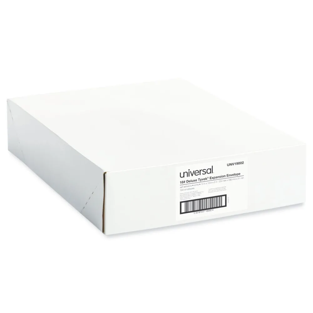 Universal UNV19002 10 in. x 13 in., #13 1/2 Square Flap, Self-Adhesive Closure, Deluxe Tyvek Expansion Envelopes – White (100/Carton)