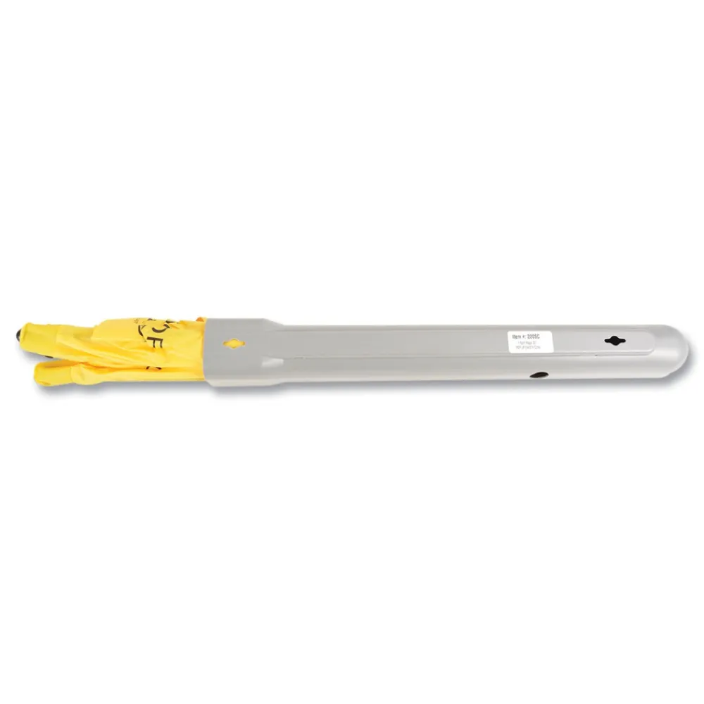 Safety cone with trilingual language and wet floor symbol on all three sides is collapsible and quickly sets up. The caution sign features the wet floor symbol and “WET FLOOR” in English and Spanish. Also features the word “CAUTION” in English, Spanish, and French for effective communication. Features a wall-mounted storage tube that can be strategically positioned in a variety of locations for ease of accessibility when a spill occurs. Lightweight and durable, it folds compactly into the wall-mountable tube when not in use for easy storage. Bright yellow color is highly visible and seen from a distance. Made from durable, water-resistant materials to prevent damage to the sign.