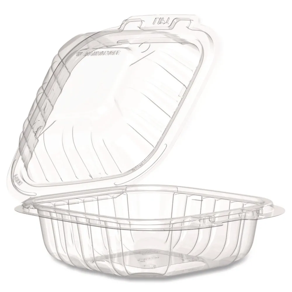 (300/Carton) 6.31 in. x 6.31 in. x 3 in. ProPlanet Microwaveable Hinged Plastic Containers – Clear – 60PPHT1