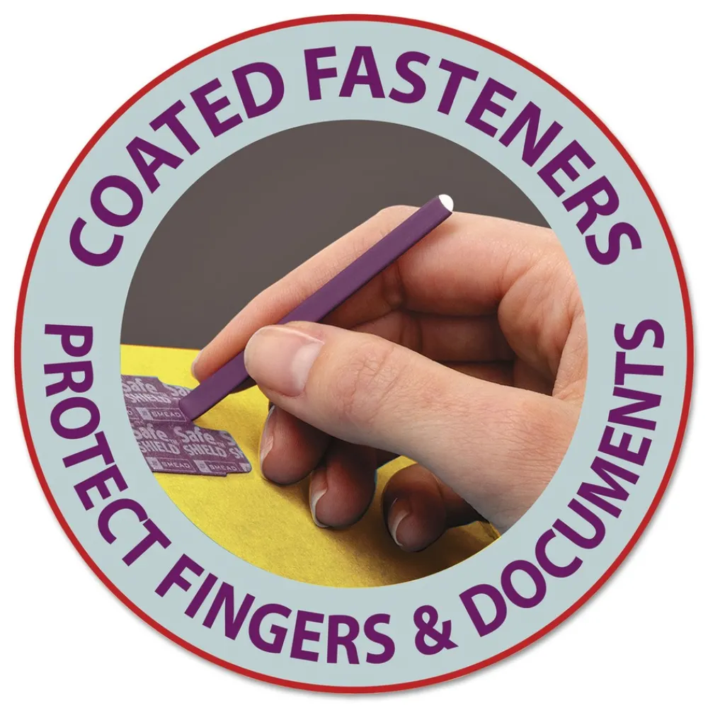 Partition folders with patented SafeSHIELD coated fasteners help prevent finger cuts, eliminate paper tears and reduce excessive fastener crinkling