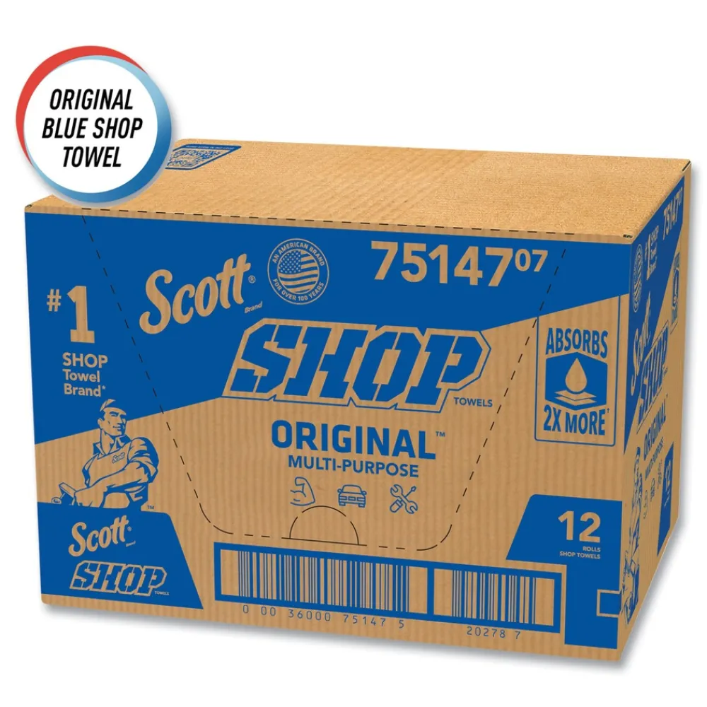 Scott 75147 9.4 in. x 11 in. Standard Shop Towels – Blue (55/Roll 12 Rolls/Carton)
