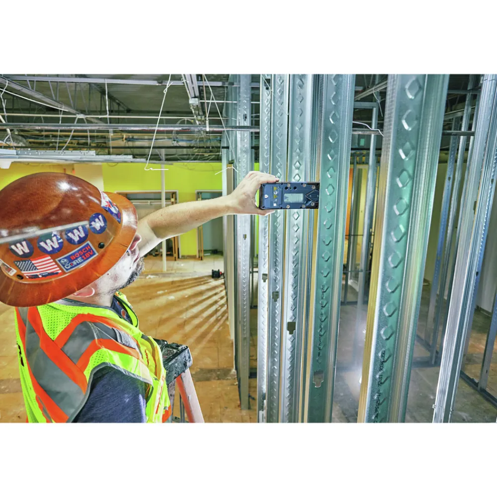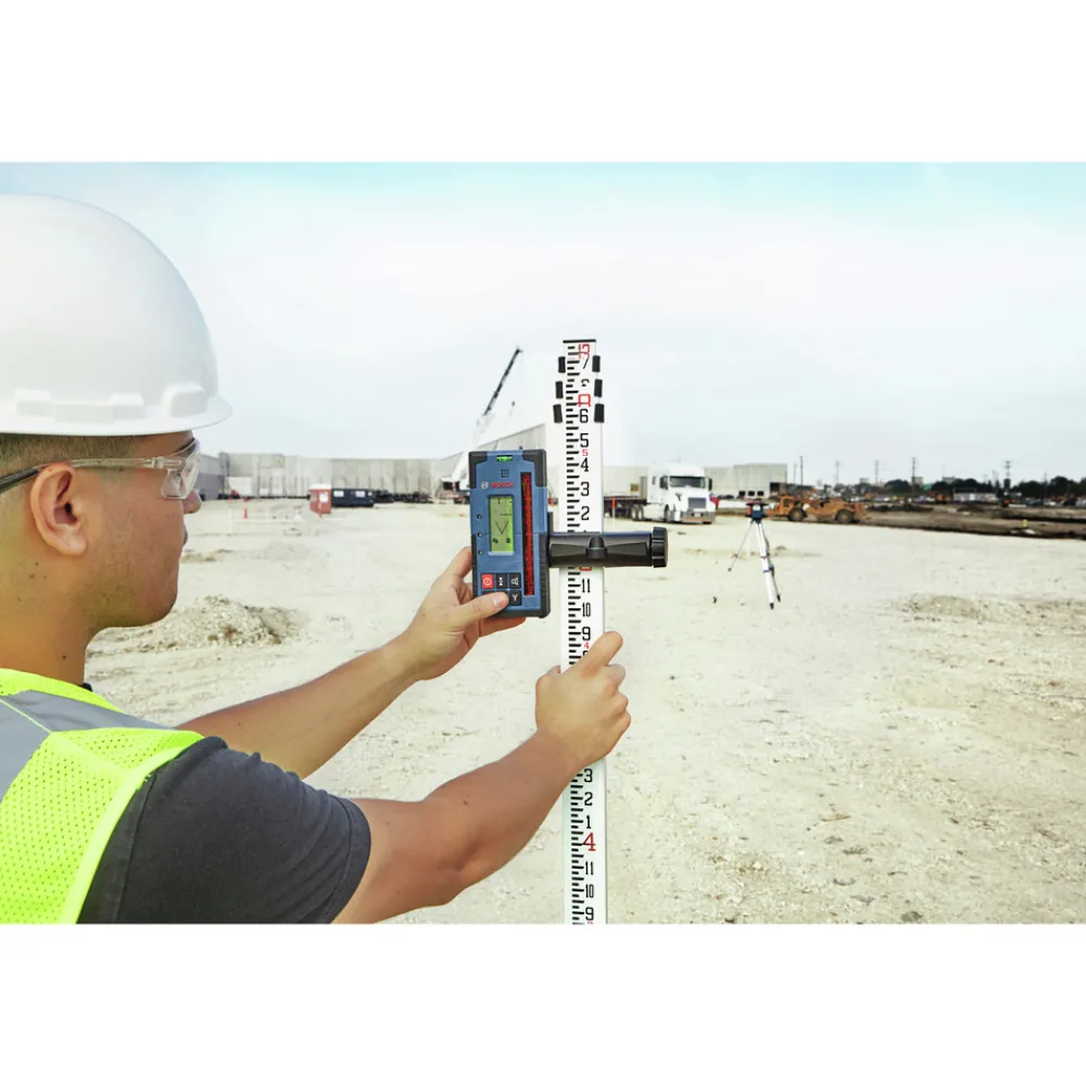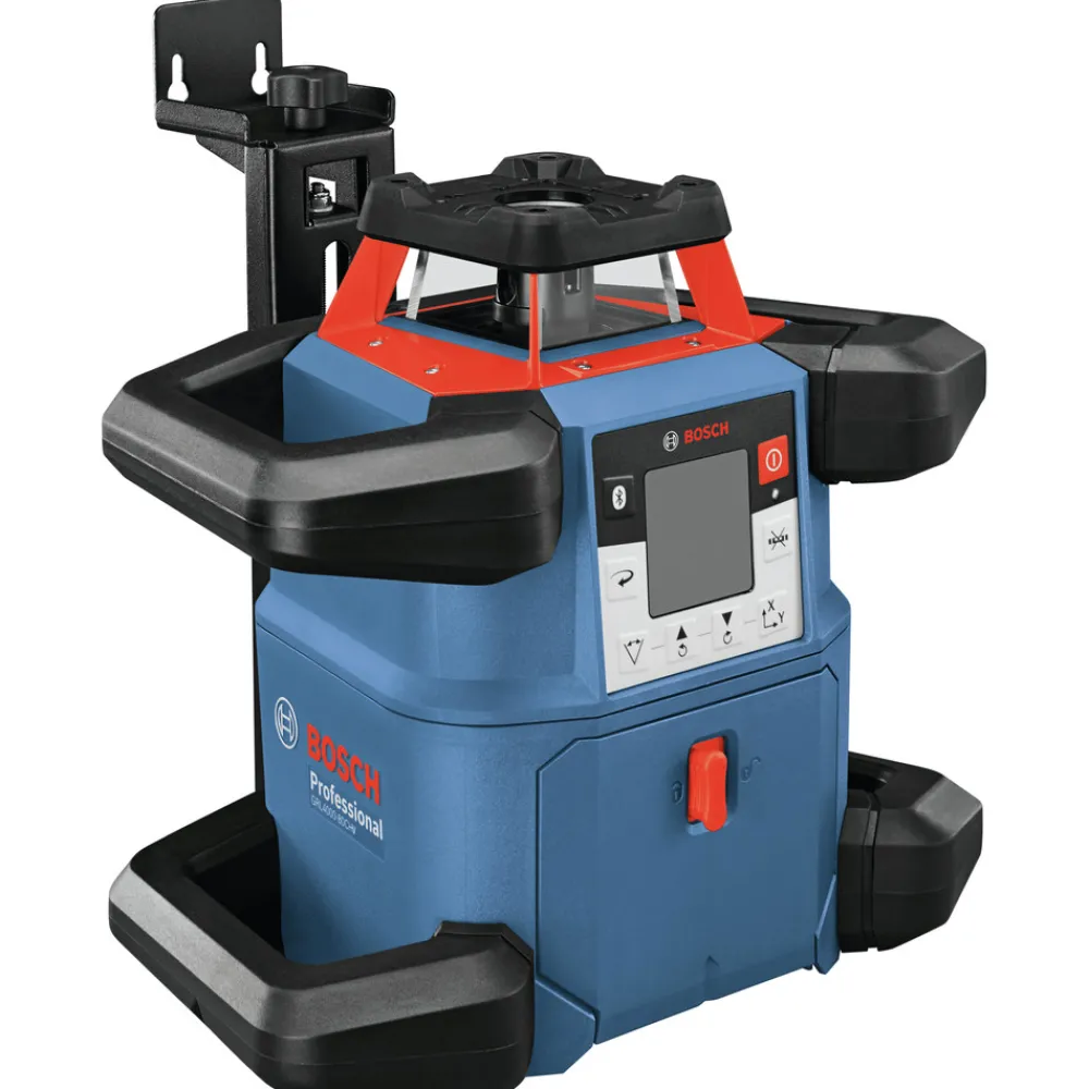 The Bosch 18V REVOLVE4000 Connected Self-Leveling Horizontal/Vertical Rotary Laser with uCAL User-calibration delivers a comprehensive solution for precise outdoor and indoor leveling. It has a Dual Dial-In Slope feature that allows slope angle adjustment on both the X and Y axes, for grading applications. The GRL4000-80CHV-RT is powered by a Bosch CORE18V 4 Ah battery, providing extended runtime. The rotary laser is compatible with 4 Ah and 8 Ah Bosch CORE18V Li-Ion batteries. It also features an alkaline adapter to use (4) D cells. The REVOLVE4000 is engineered with a cage overmold and an innovative handle design, and it is built to IP68 dust- and water-protection standards. It features Bluetooth connectivity to a connected device, linking to the Bosch Leveling Remote App. This app controls on/off, Dual Dial-In Slope, and more. The rotary laser features uCAL, for user-calibration, taking the user step by step through the calibration process. This avoids tool down time and provides confidence that the laser is accurate. It delivers accuracy of up to +/- 1/16 in. at 100 ft. in horizontal applications and +/- 1/8 in. at 100 ft. in vertical mode, and a range of up to 4000 ft. with laser receiver. The laser features a vertical beam at 90 Degrees point for layout, squaring and plumb applications.