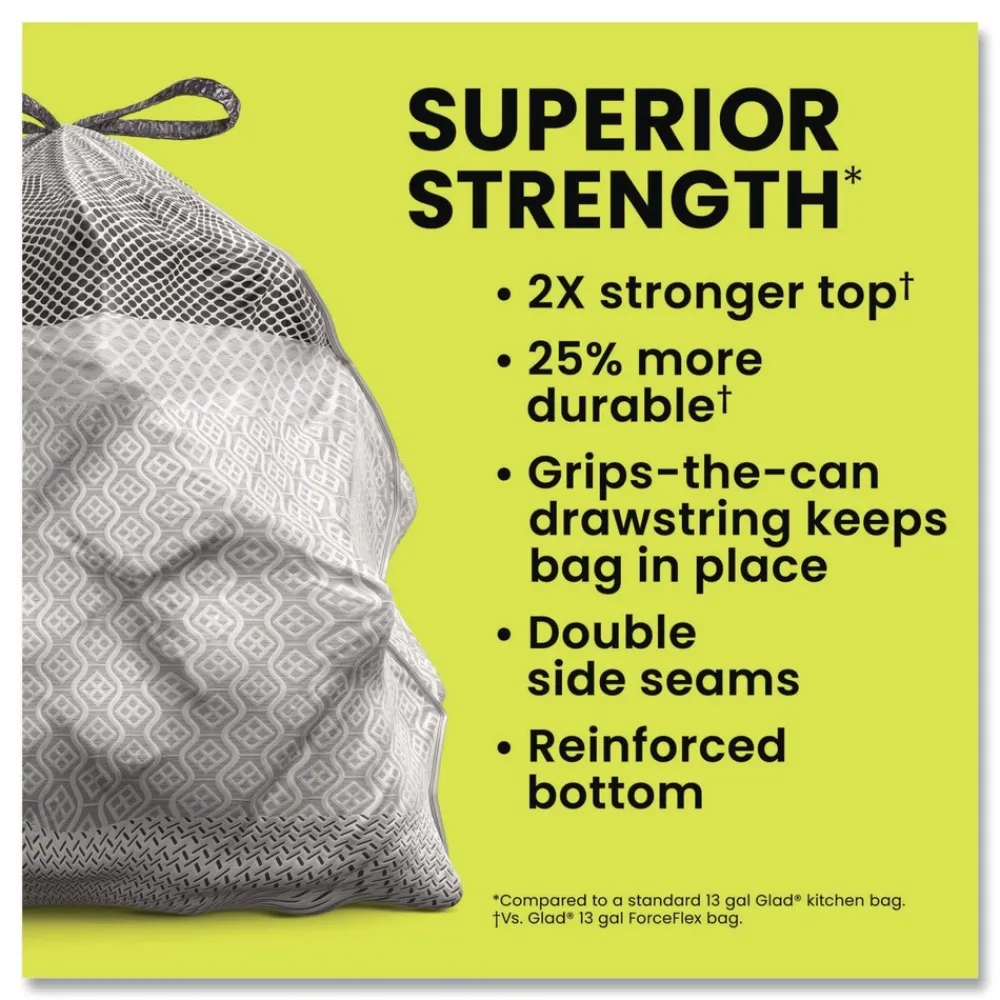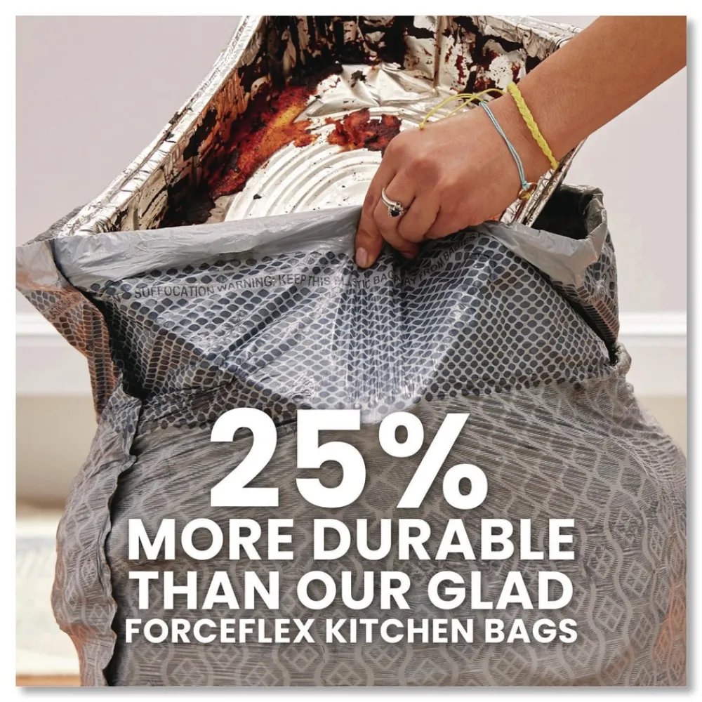 25 percent more durable versus Glad 13 gallon ForceFlex tall kitchen bags