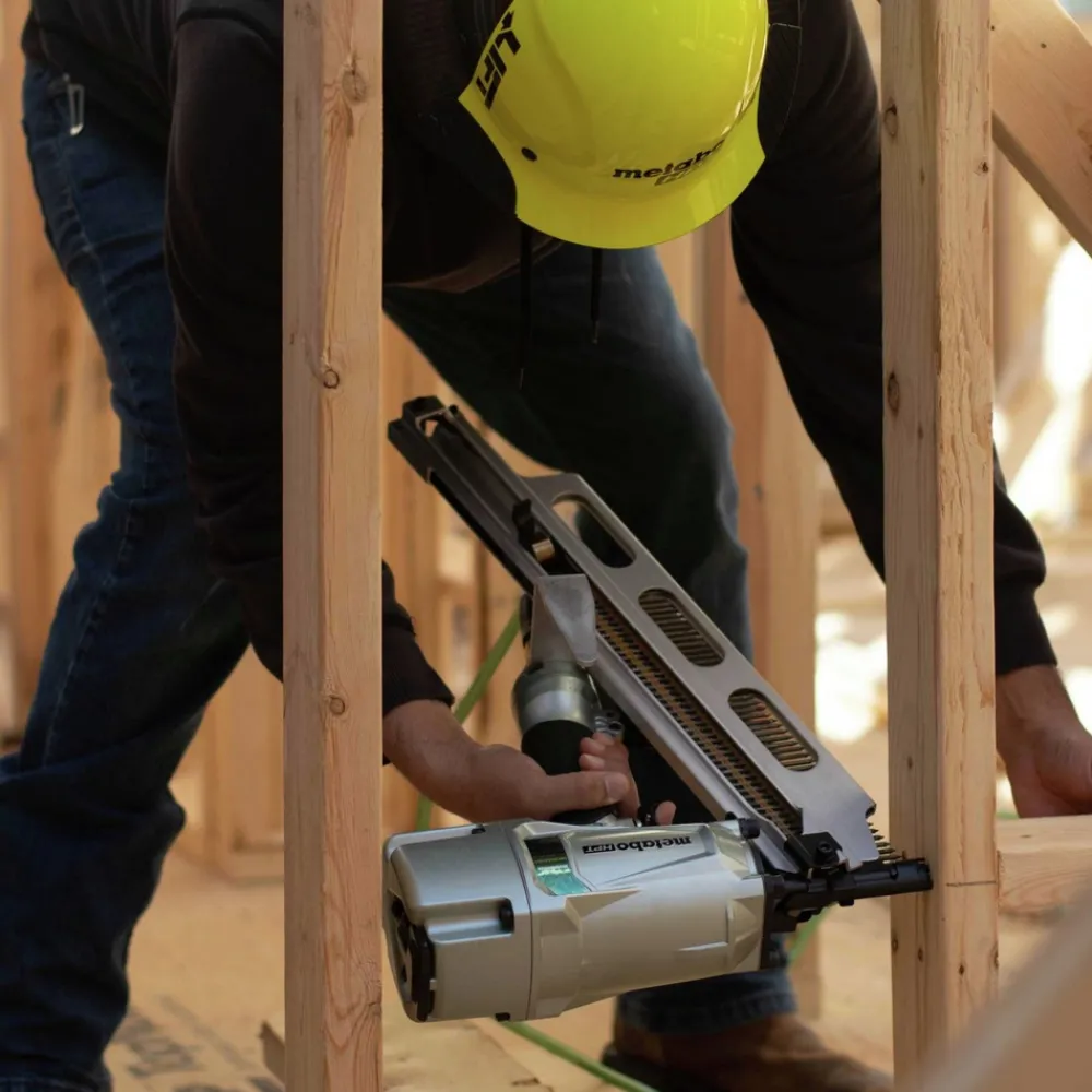 The Full Round Head Framing Nailer with Depth Adjustment is used for floor and wall framing, truss build-up, window build-up, construction of subflooring and roof decking. It is also great for wall sheathing in mobile homes and modular home construction. If depth adjustment is not necessary, see the NR83A5(S).