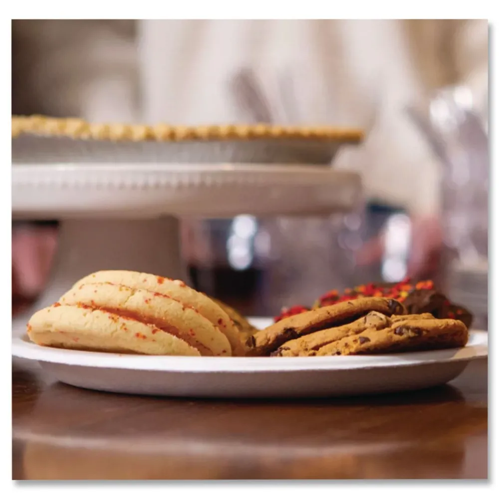 Get the impressive strength of molded fiber at an economical price. Extra-rigid dinnerware supports whatever you dish out, without requiring wasteful doubling. Decorative, highly practical rim edge helps prevent spillage.