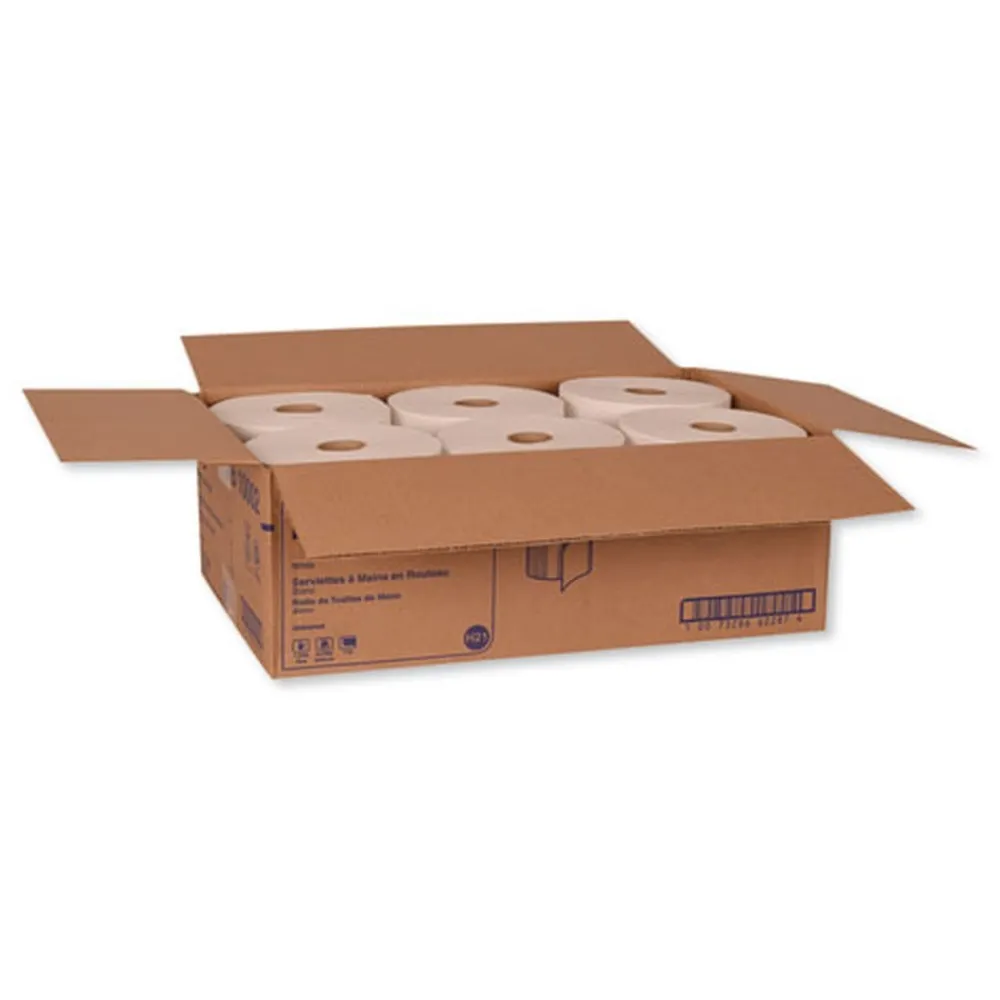 Tork Hardwound Roll Towels offer the perfect combination of performance and value. Easy to load and maintain for ease of use. Embossing enhances hand feel and maximum absorbency with fewer towels used per hand dry. Long-lasting rolls minimize maintenance costs while maximizing service. Designed for businesses seeking to provide their washroom with economic, cost-efficient solutions, in good quality, which still maintains a professional appearance. These general towels are suitable for healthcare, manufacturing, industrial and educational facilities.