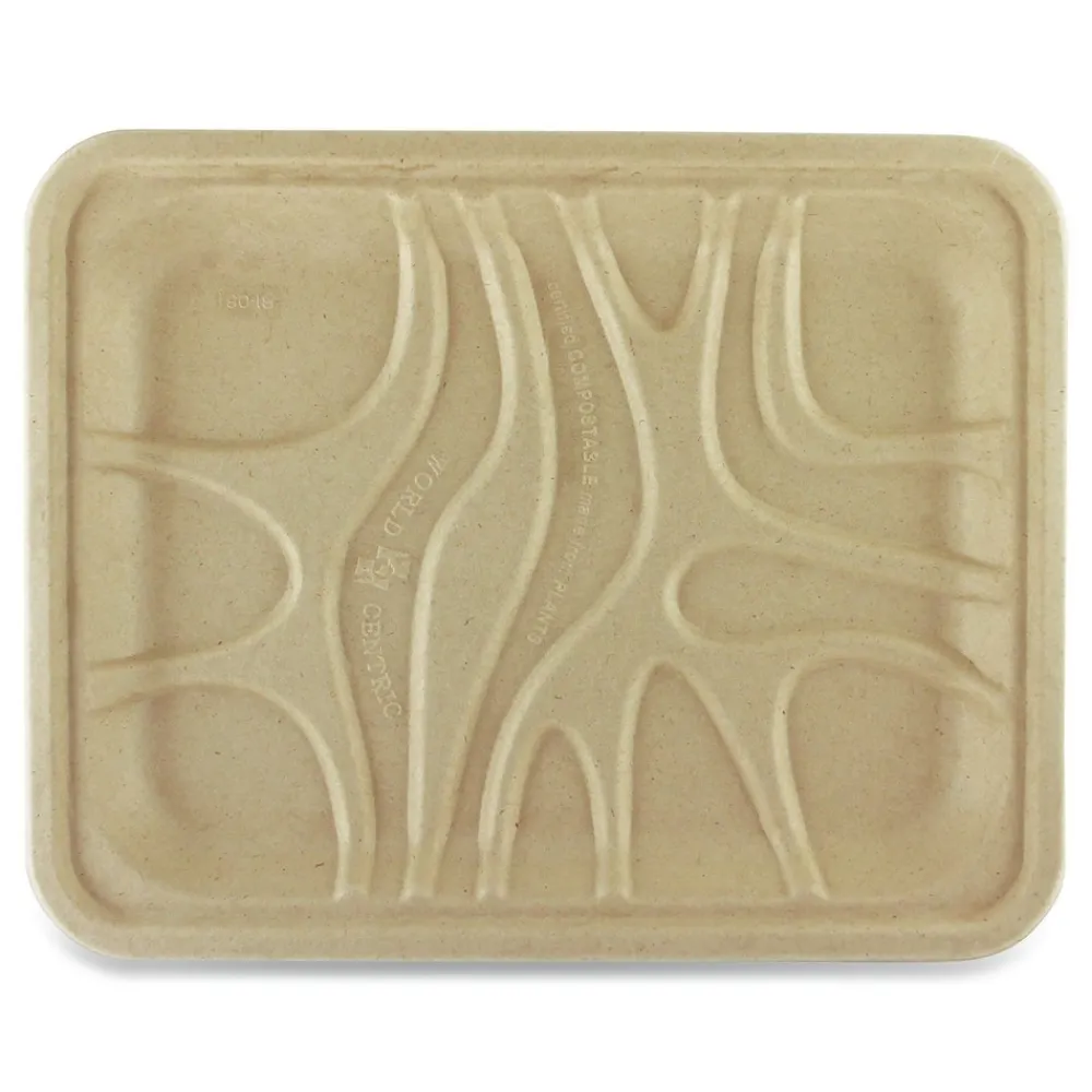 World Centric TRSC4SLLF 9.1 in. x 7.1 in. x 0.7 in. PLA Lined PFAS-Free Paper Fiber Trays – Natural (500/Carton)