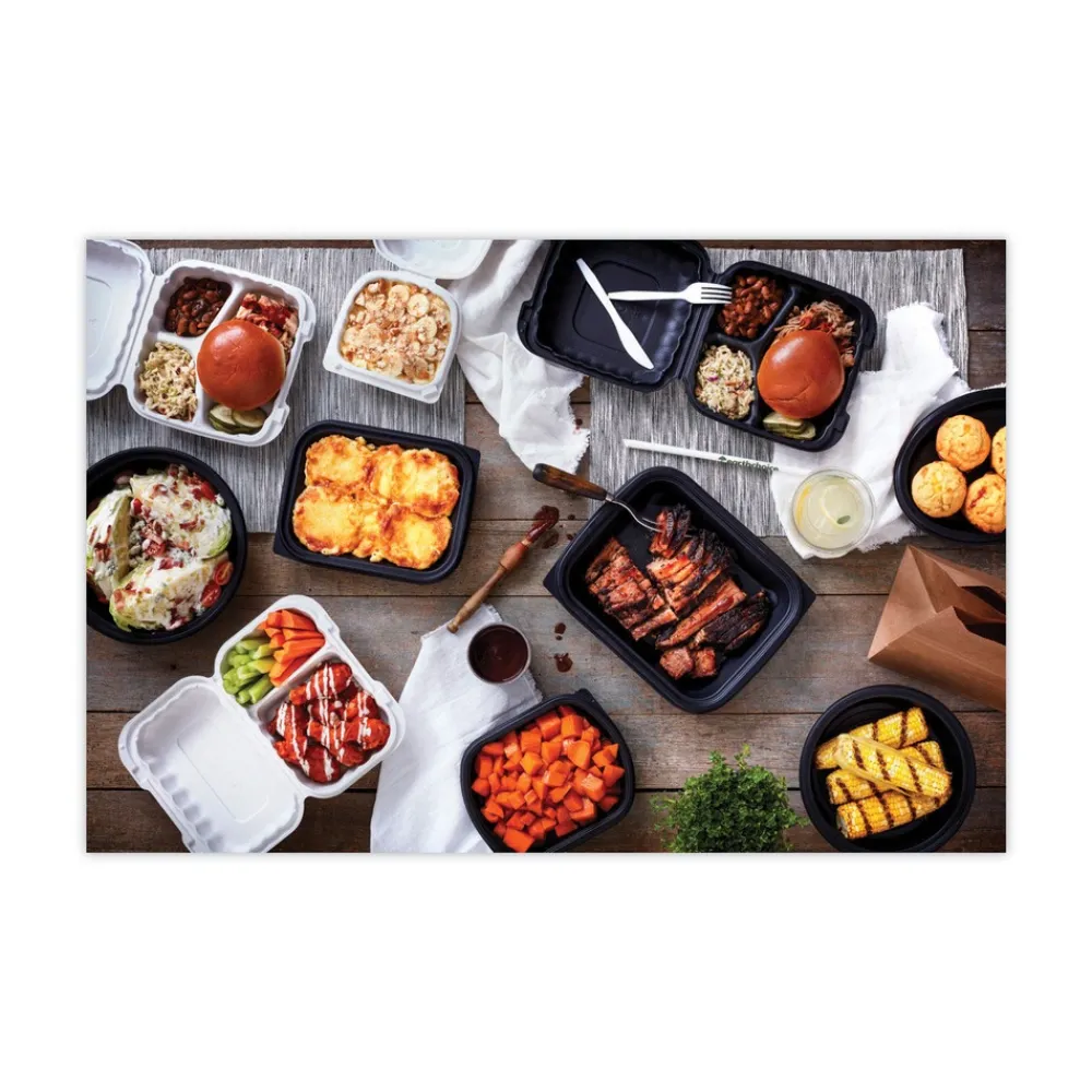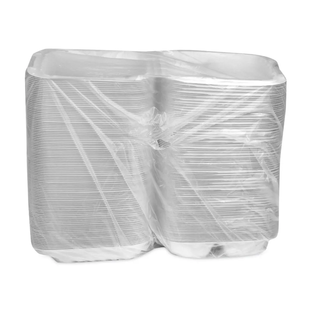 (200/Carton) EarthChoice SmartLock 8.31 in. x 8.35 in. x 3.1 in. Microwaveable MFPP 3-Compartment Hinged Lid Containers – White – YCN808030000