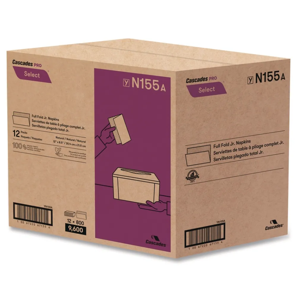 Cascades PRO N155 12 in. x 8.5 in. 1-Ply Select Full Fold II Napkins – White (12 Packs/Carton)