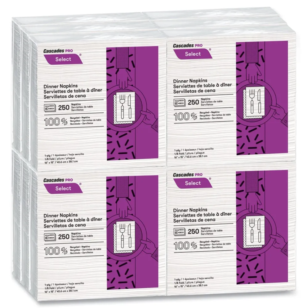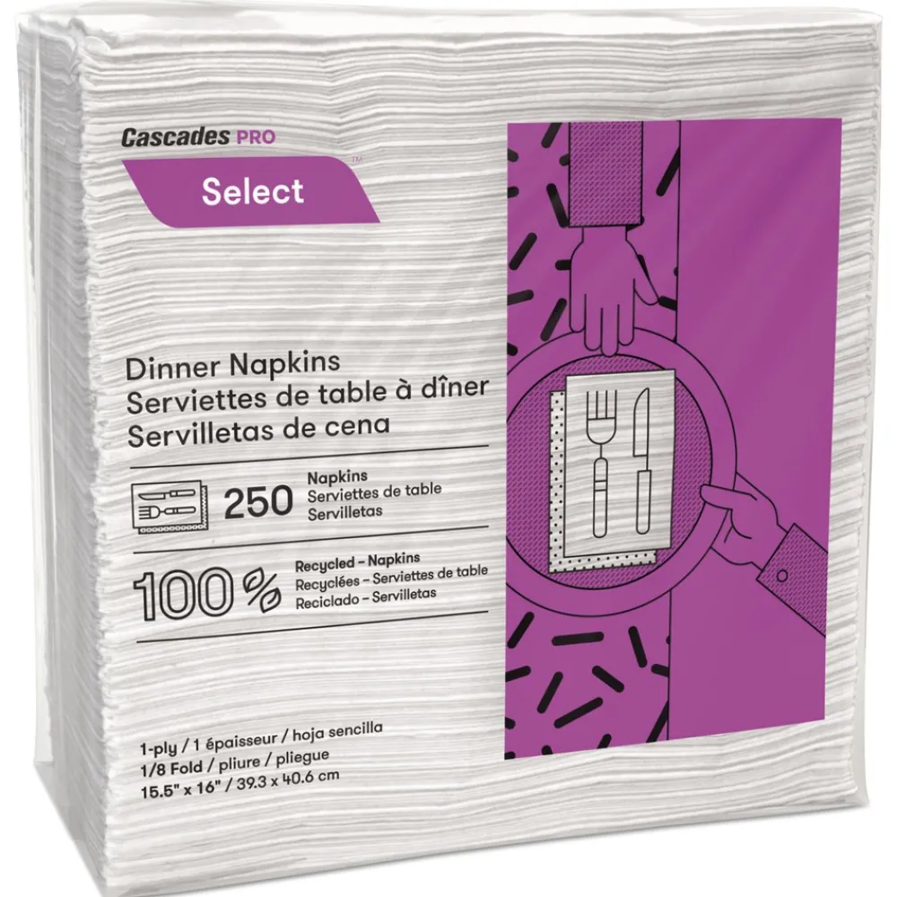 Cascades PRO N050 15.5 x 16 1-Ply Select Dinner Napkins – White (12/Carton)