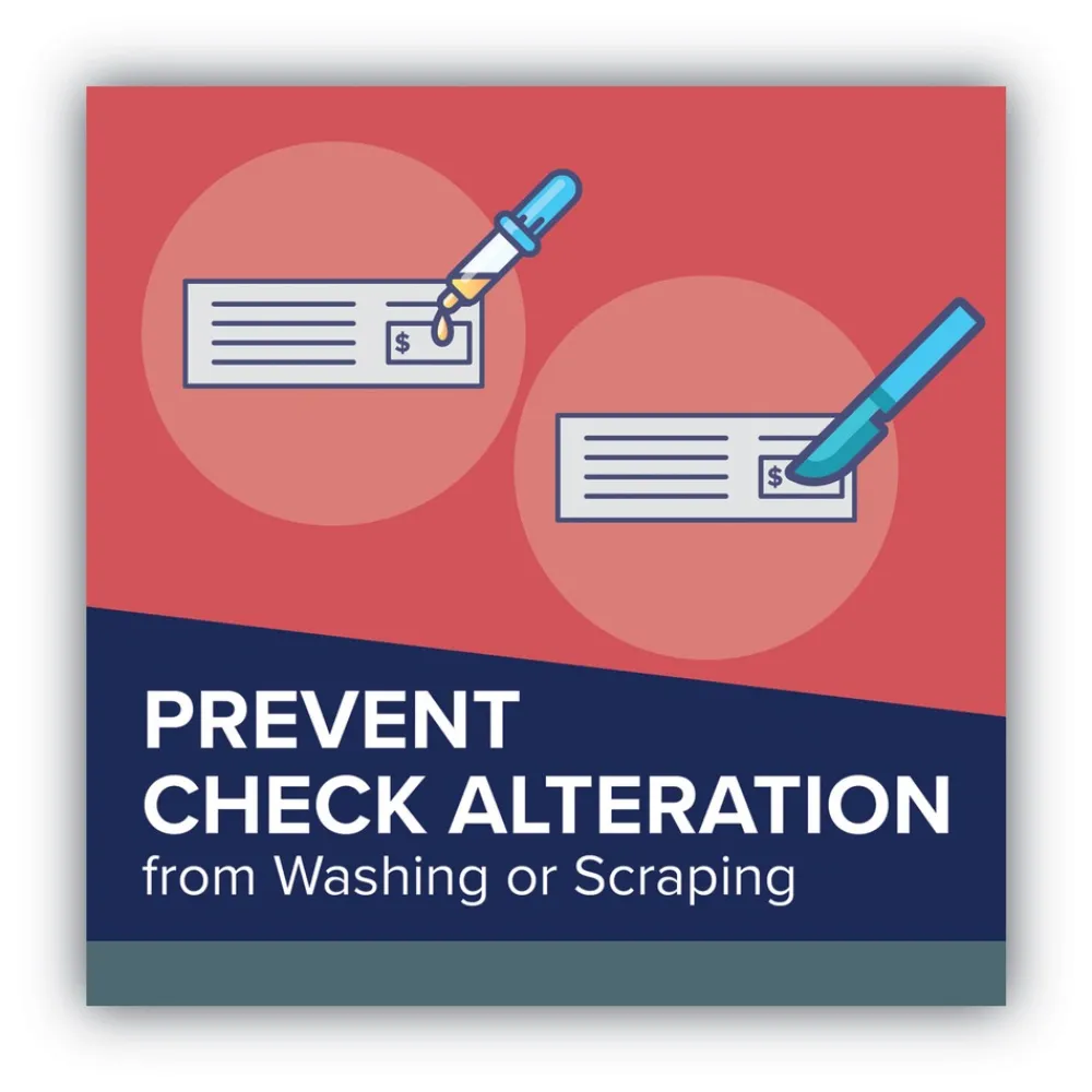 Hidden security feature releases a red stain if chemical alteration is attempted.