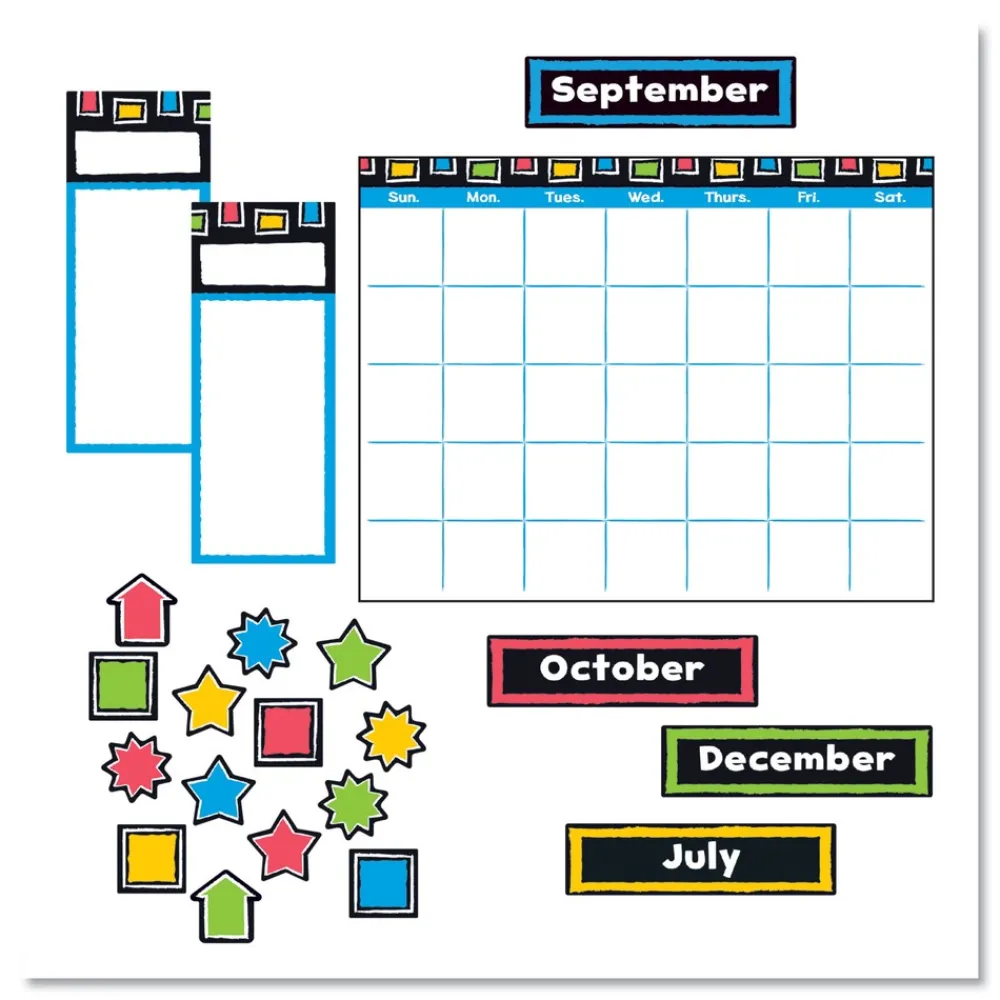 TREND T8392 30-Piece 18 in. x 26.5 in. Bold Strokes Wipe-Off Calendar Bulletin Board Set – Assorted Colors