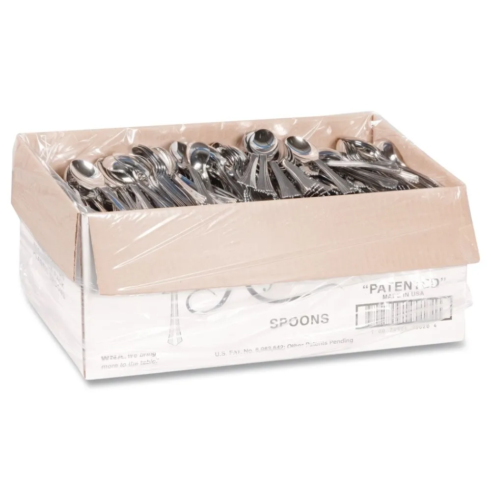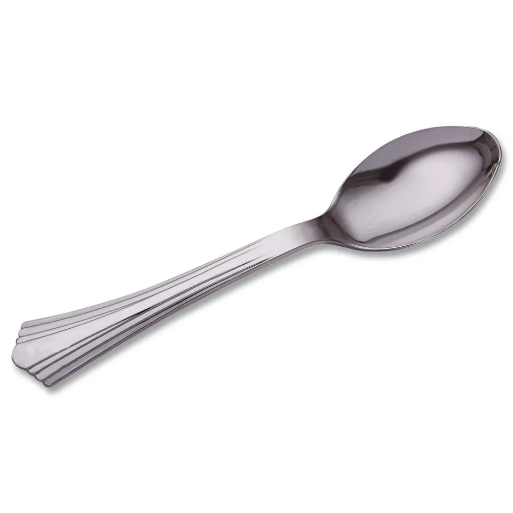 (600/Carton) 6 1/4 in. Reflections Design Heavyweight Plastic Spoons – Silver – 620155