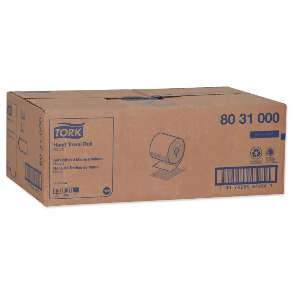 Tork 8031000 8 in. x 1000 ft. Universal Notched Hand Towel Roll – Natural (6 Rolls/Carton)
