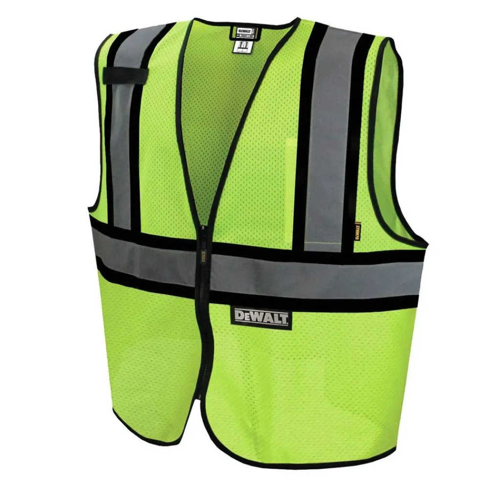 The DEWALT DSV221 Class 2 Economy Mesh Vest with Contrasting Trim will help protect workers with a brand name they know and trust. The DSV221 is built with durable stitch reinforcement at major stress points providing Guaranteed Tough protection. The high visibility mesh material and the 2 in. sewn on reflective tape with contrasting trim helps provide visibility in both bright and low light conditions.