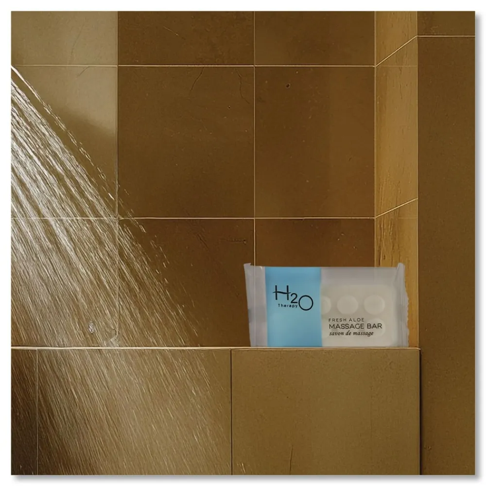 The moisturizing cleansing bar is enriched with soothing aloe vera and nourishing pure olive oil, helping to leave skin feeling soft, clean and revitalized after every use. This luxurious soap features a subtle, refreshing fragrance that gently soothes and uplifts the senses. Free from sulfates and never tested on animals, this gentle, cruelty-free formula is safe for all skin types and reflects a commitment to sustainable practices. Each cleansing soap bar sachet features a clean touch of elegance and calm to any bathroom setting. Designed to complement both contemporary and classic interiors, it seamlessly enhances the overall ambiance of guest rooms. More than just amenities, the H2O Therapy collection reflects the dedication to quality, comfort and care. Give guests an experience they’ll remember – and one they’ll want to return to.