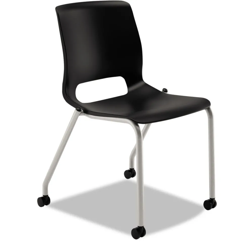 HON HMG2.N.A.ON.CU10.PLAT Motivate 300 lbs. Capacity Four-Leg Stacking Chair – Onyx/Black/Platinum (2/Carton)