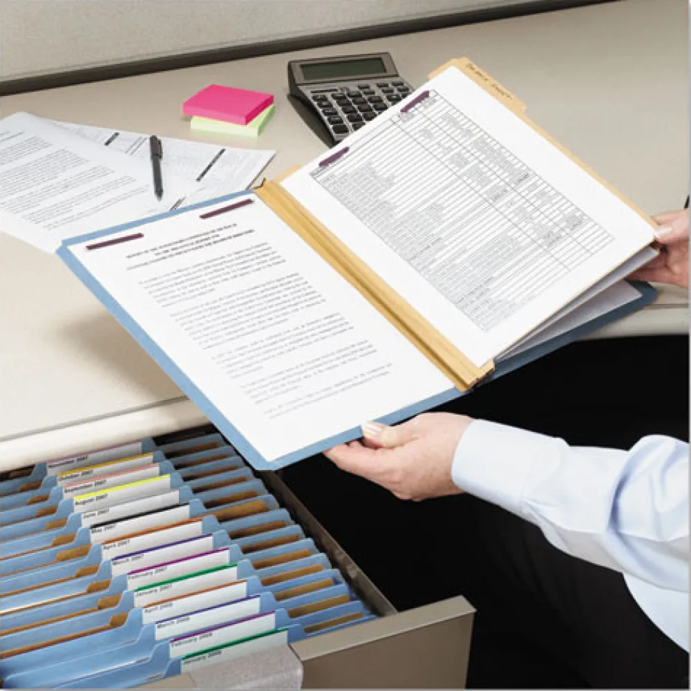 Protect your documents and fingers with Smead patented SafeSHIELD Coated Fastener Technology; the ultimate solution to fastener issues, including paper tears, finger cuts and excessive fastener crinkling. Use colors to signal category or type of project at a glance. Sturdy tear resistant gusset expands to hold up to 2 in. of material. Two dividers provide six filing surfaces for ultimate organization.