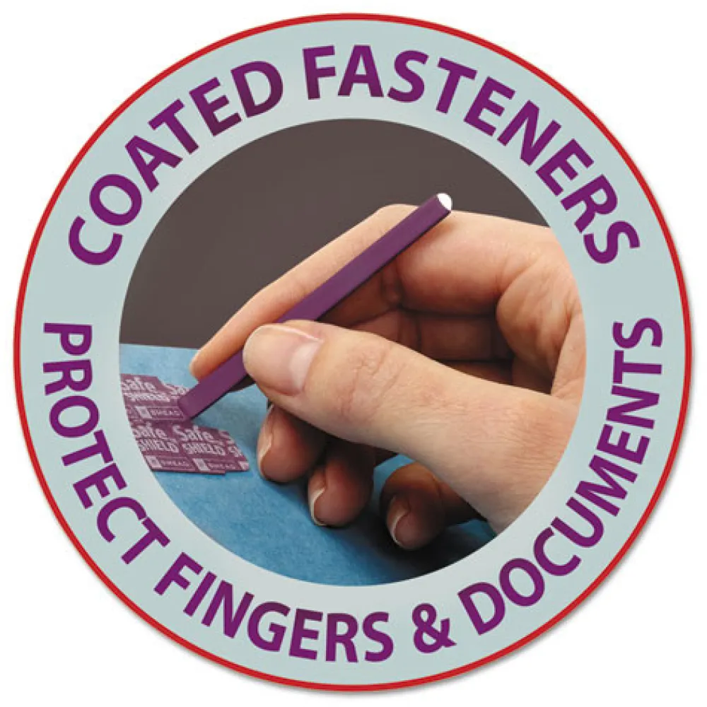 Partition folders with patented SafeSHIELD coated fasteners help prevent finger cuts, eliminate paper tears and reduce excessive fastener crinkling