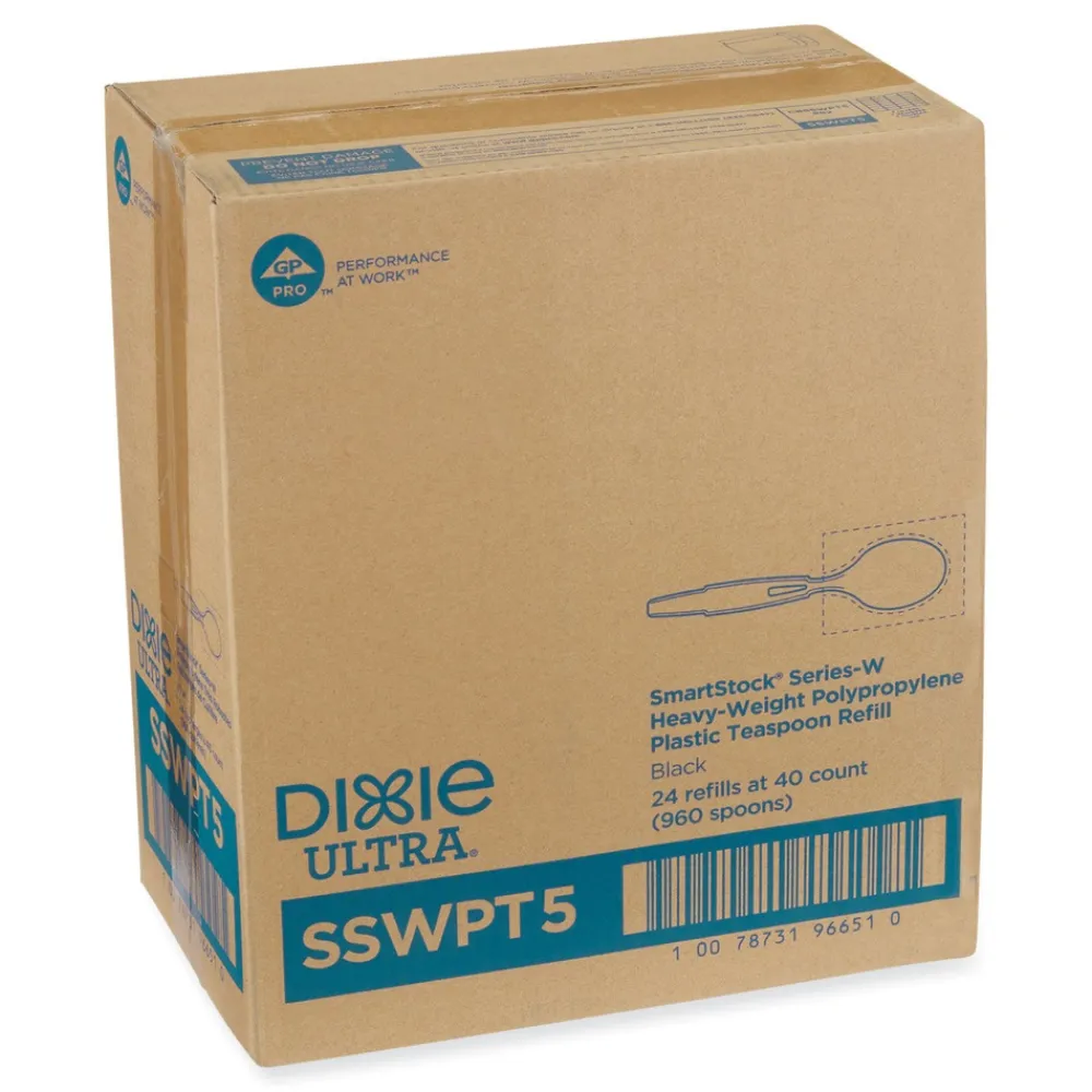 Dixie SSWPT5 SmartStock Wrapped Heavyweight Cutlery Teaspoons Refill – Black (960/Carton)