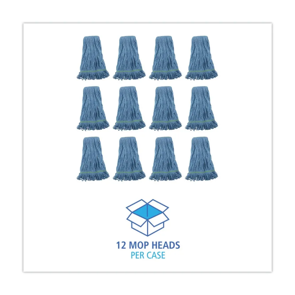 Boardwalk BWK502BLNBCT Super Loop Cotton/Synthetic Fiber Wet Mop Head with 1 in. Headband – Blue (12/Carton)