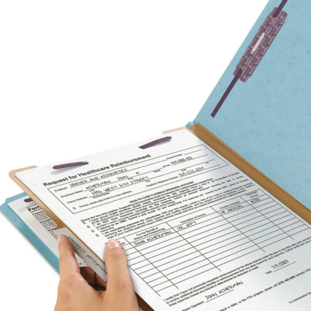 Smead 18730 1 Divider Four SafeSHIELD Fasteners Legal Size Four-Section Pressboard Top Tab Classification Folders – Blue (10/Box)