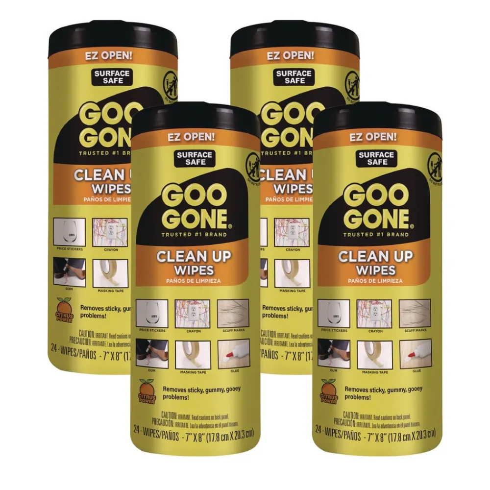 Harness the cleaning power of Goo Gone in a convenient wipe. Eliminate your sticky, gooey, gummy problems without harming your surface. The gentle, non-abrasive formula is safe for daily use. Safe for use on latex painted walls, wallpaper, wood flooring and furniture, laminate flooring and countertops, carpet, ceramic tile, glass, stainless steel and granite. Tough task wipes are recommended for cleaning scuff marks, masking tape residue, ink spills, paint tree sap, stickers, gum, glue, markers and crayon. Ideal for quick clean-ups, with an easy to take on-the-go canister. Citrus powered cleansing wipes get the job done without damage.